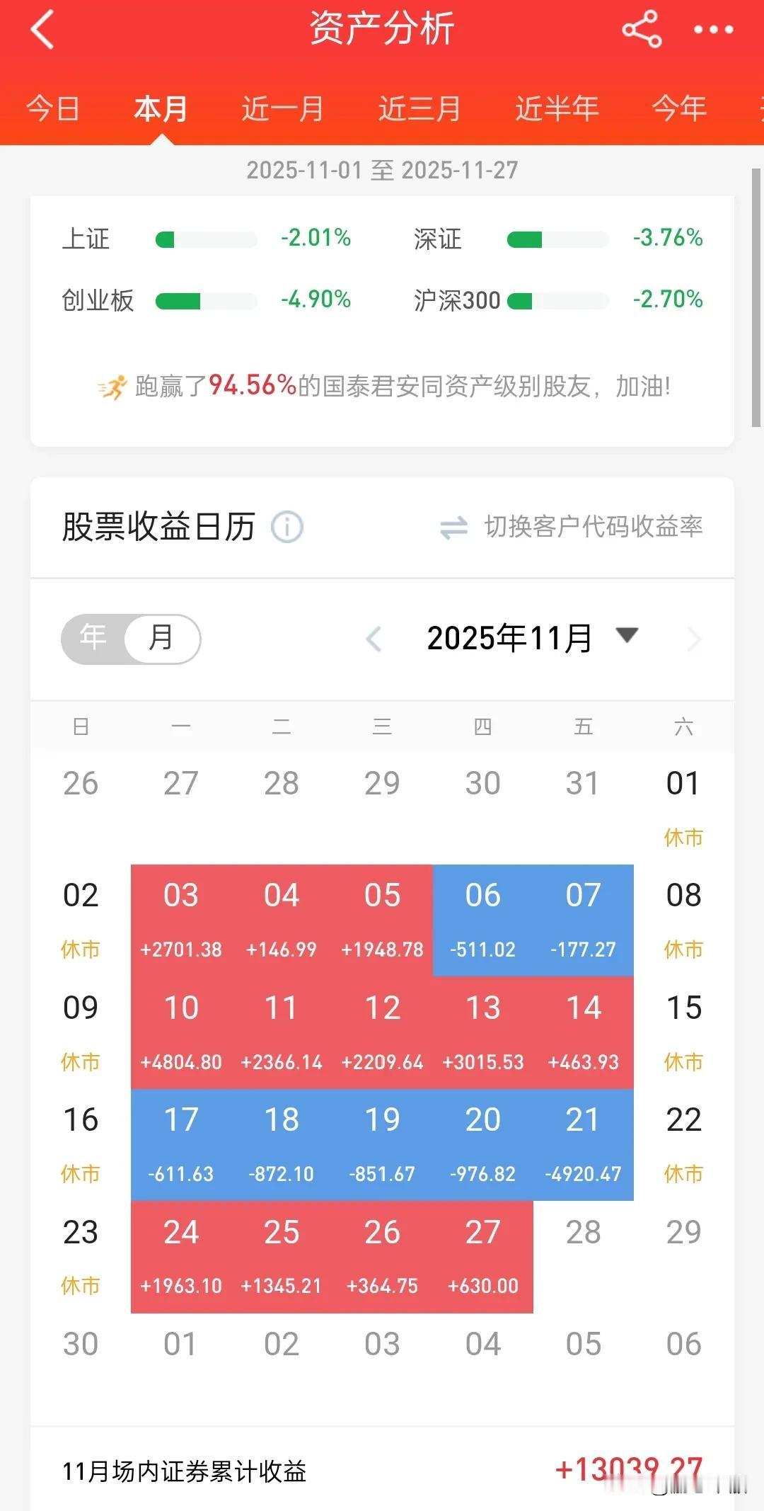 本周几乎天天4000家上涨,就是连涨了5天还没有上周五一天跌掉的多,这就是炒股难的地方,躲不掉大跌的同时还能错过上涨,等到自己手里股票大涨的时候又必然卖飞,吃苦的日子我一直都在,苦尽甘来的那一刻就会华丽转身,懂事的让人心疼!