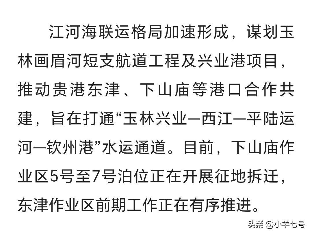 玉林这几年正在默默按计划破局! 没有条件那就主动创造条件! 先从交通设施入手!继修高铁机场,合作共建码头这几件大事完成之后,继续努力谋划完善交通布局,一方面是高速路网,正在努力推荐连接粤西,连接北部湾的高速路建设,位于两湾交汇处的玉林正在努力把这一优势转化成发展的动力,另一方面是水运,谋划与贵港合作建设联通运河,兴业高峰港建设,与贵港东津,下山庙作业区形成联通“玉林-西江-平陆运河-钦州港”的水路通道!其实不得不佩服玉林一步步扎实巩固基础的发展思路,其县域发展相对来说也是比较均衡,你觉得呢广西的未来发展潜力如何 贵港和玉林携手发展怎么样 哪座城市是广西发展最具潜力城市