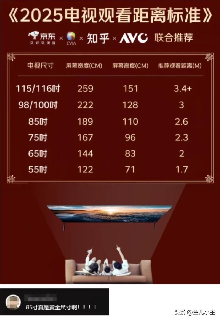 都说85吋是黄金尺寸,买回来却没有好画质?2大要素立马自查突然发现,大家买电视都偏爱85吋,还说这是“黄金尺寸”。确实,85吋放在客厅刚好适配大多数户型,不管是窝在沙发看综艺,还是和家人一起追剧,视野开阔又不压眼。可不少人买回来才发现,光有大尺寸根本不够,画质跟不上的话,再大的屏幕也是浪费。 其实好画质一点都不复杂,核心就是这两大关键:好色彩和高对比度。想追求鲜活饱满的色彩,很多人会选RGB电视,毕竟三色发光的先天优势摆在那。但实际用下来,复杂场景就是串色、偏色、褪色、色晕…… 有点本末倒置了。那高对比度怎么来?还得靠控光能力。要是控光不行,动态对比度就会变差。就算是85吋的大屏幕,也没法呈现出真实的质感。 要是想同时兼顾好色彩和高对比度,其实可以看看TCL Q9M,它算是把这两个痛点都解决得很到位。它搭载改进型RGB技术,能把颜色和光线都控制得很精准,之前RGB电视常见的色彩问题,都得到了大幅改善。呈现出来的效果就是红得正、绿得准、蓝得透。控光方面,专属的RGB万象分区技术,能让画面亮暗对比更分明,动态对比度更高。再搭配7000:1的蝶翼星曜屏,画面层次感一下就出来了。 关键是这样一台85吋的RGB电视,万元内就能拿下,既占了黄金尺寸的优势,又有实打实的好画质,质价比拉满。怕踩画质坑的,这款可以闭眼入。