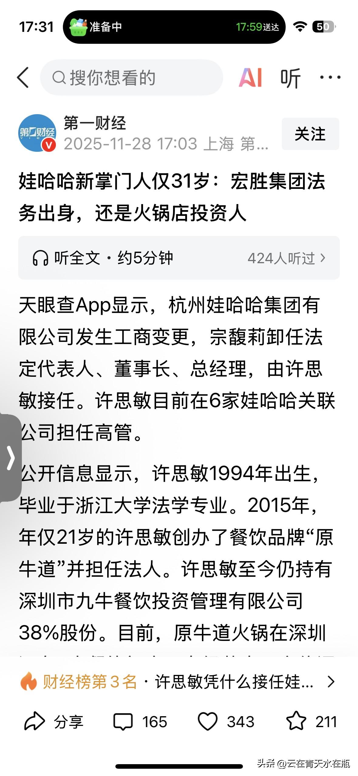 娃哈哈宗大小姐的选择的董事长接班人,年轻,懂法务,会吃。 我只看到宗大小姐的选择后面,是一条颠扑不破的美食定律,天下没有什么事情是一顿火锅搞不定,如果一顿不行,那就两顿,两顿都不行,那就把火锅店老板找来,肯定行,必须行! 天冷了,大家要多多吃火锅!