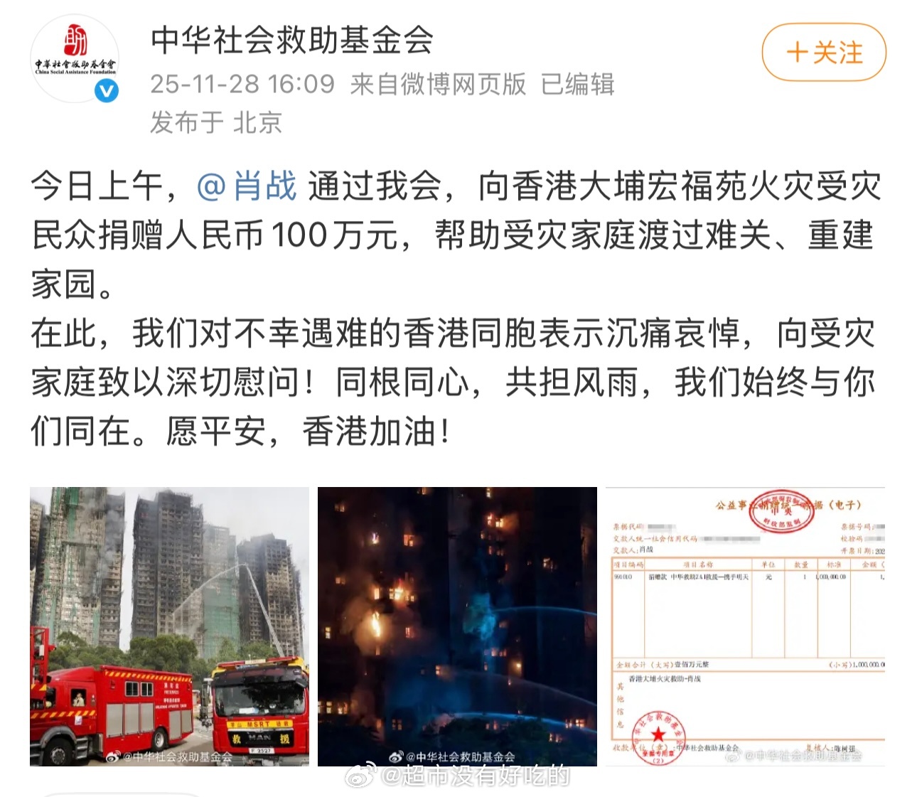 吴磊为香港火灾捐款100万!香港平平安安🙏
