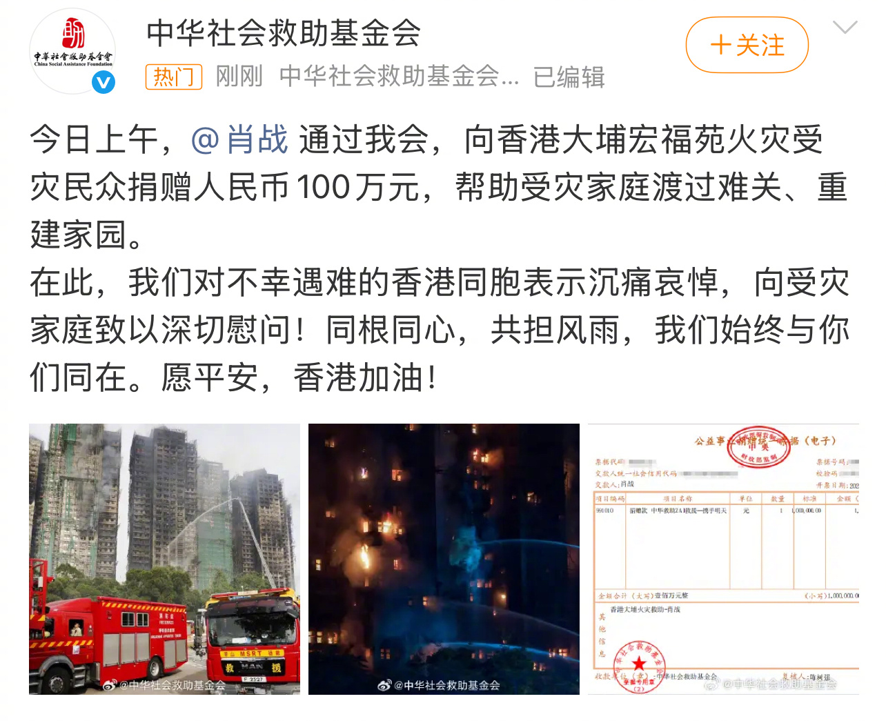 肖战为香港捐款100万元,愿平安🙏香港捐款 肖战