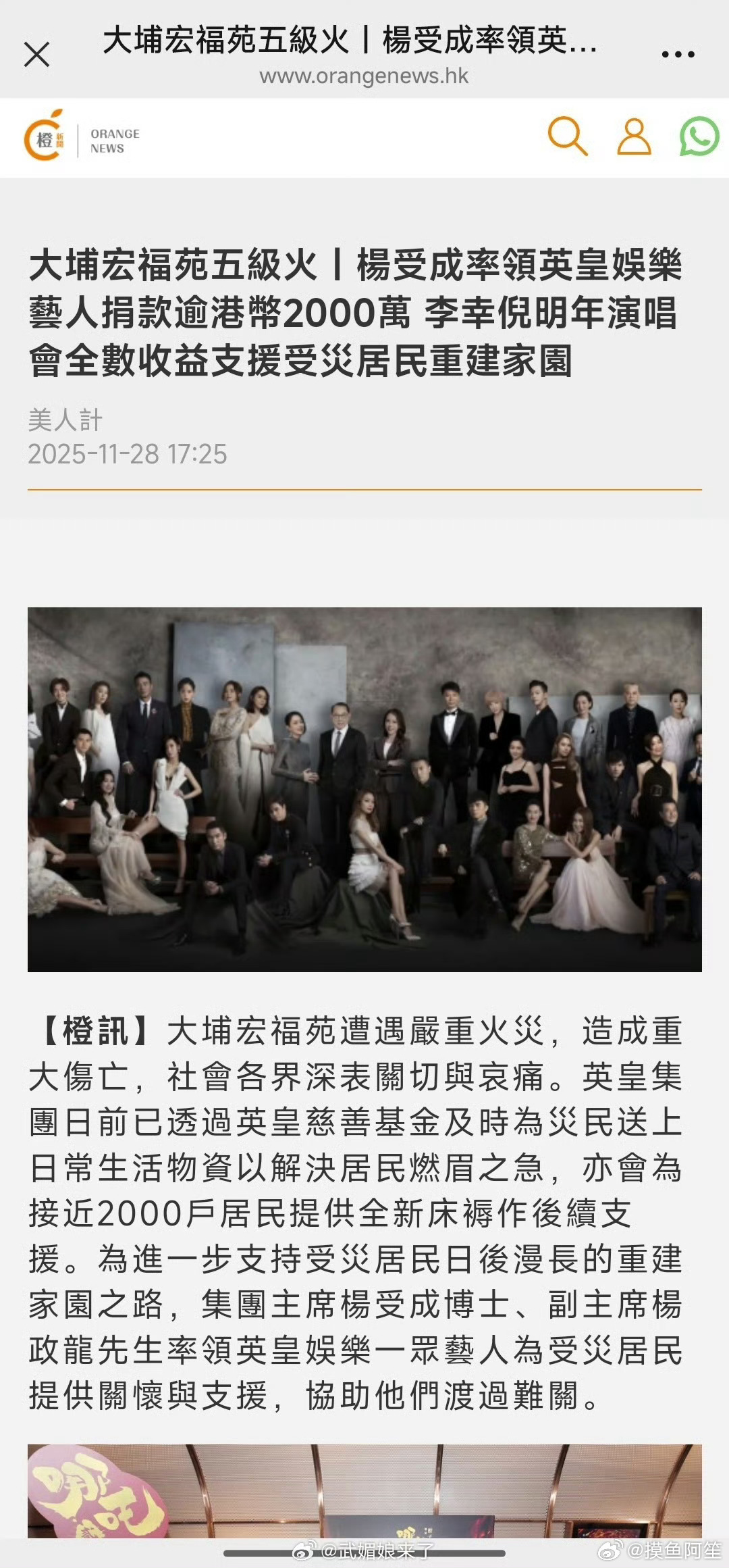 英皇娱乐和陈伟霆谢霆锋在内的众多艺人捐款2000万。