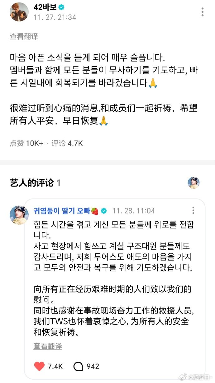 TWS向中国香港捐款50万港币,并且队长申惟和成员韩振在社区发双语慰问,美吐很好。TWS捐款50万TWS捐款50万港币
