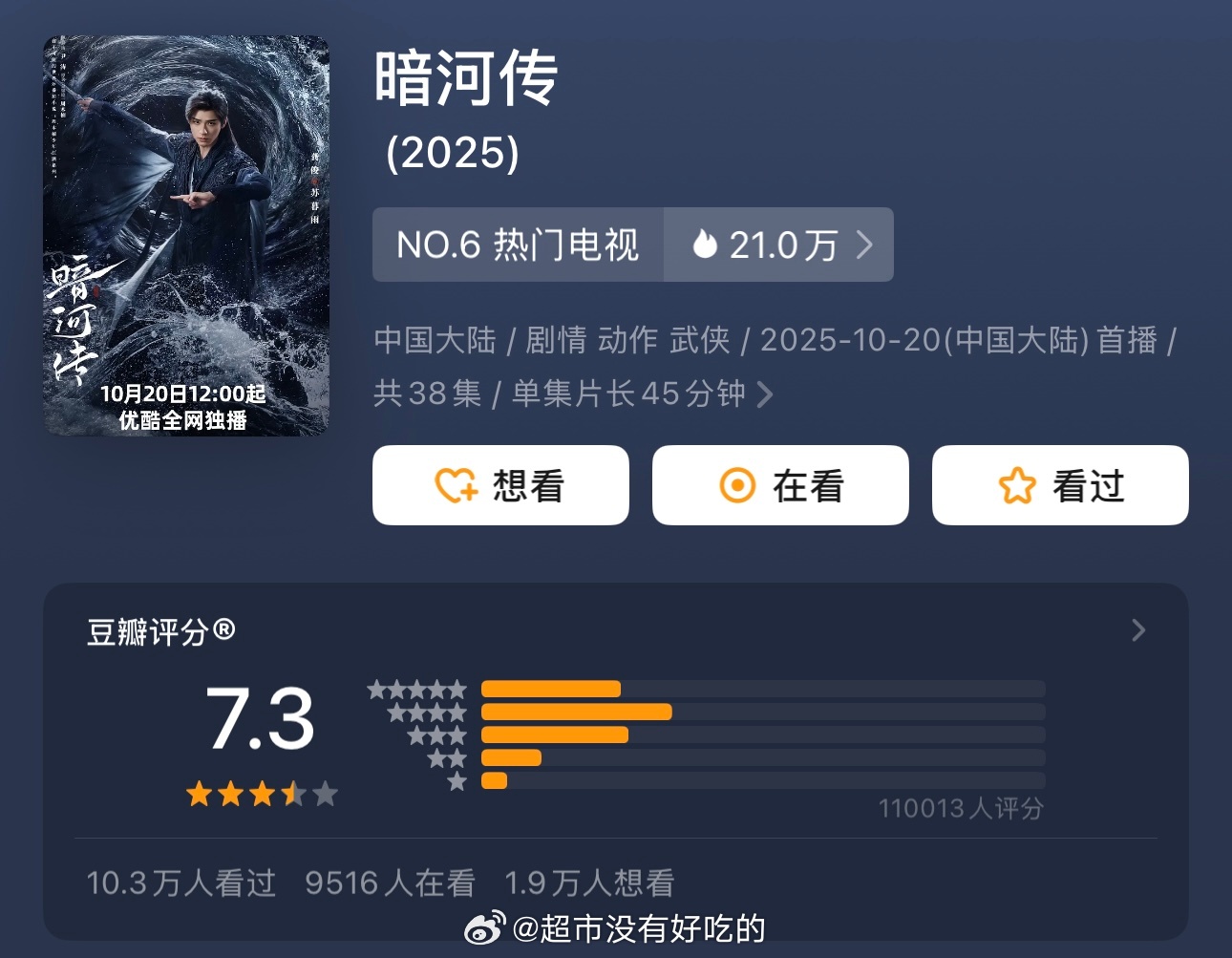 龚俊暗河传评分人数破11万了!看的人越来越多了