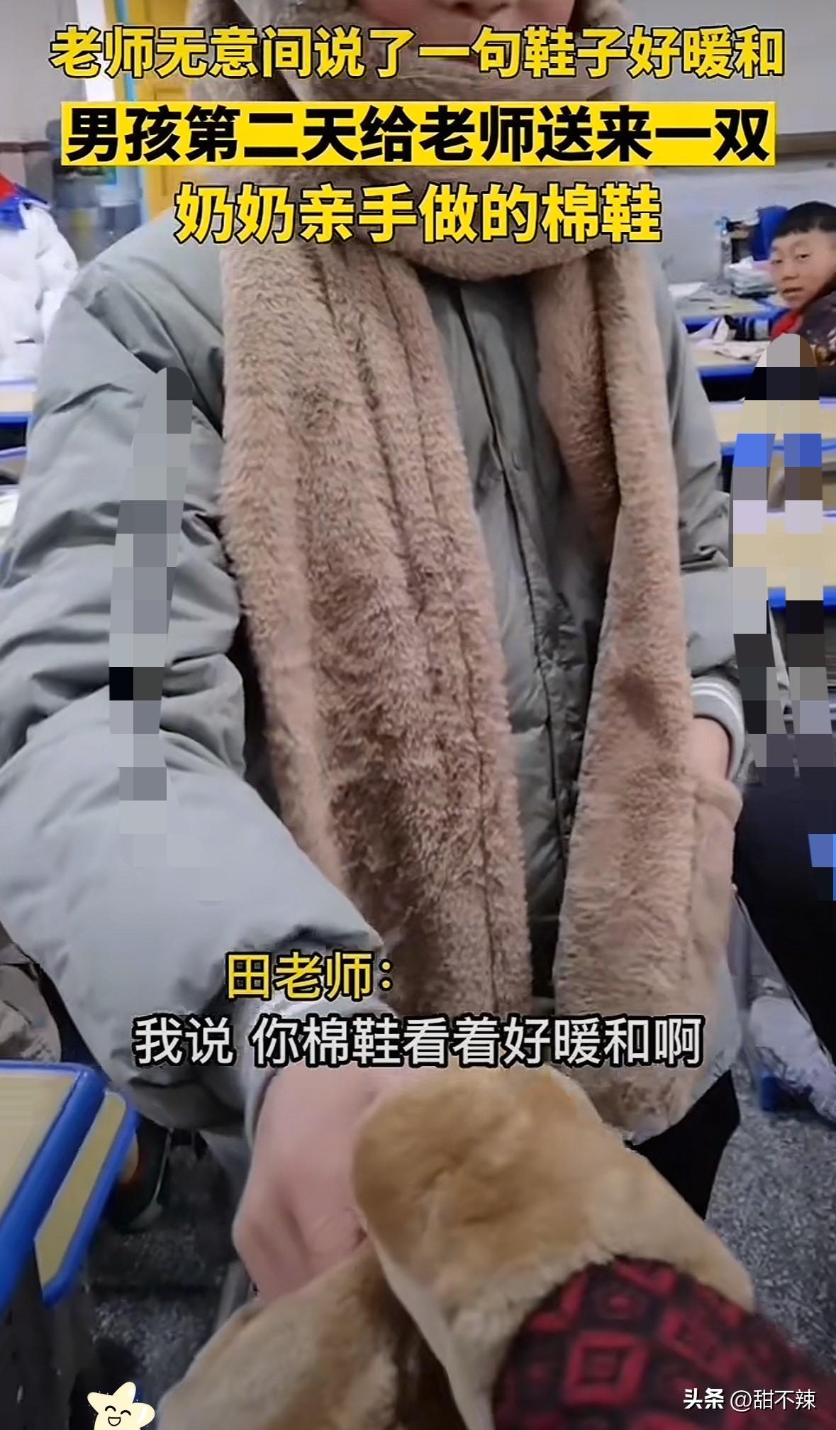 湖南湘西,一女老师在食堂吃饭时,随口夸学生的手工棉鞋好看又暖和,没成想第二天一早,孩子就捧着奶奶连夜新做的同款鞋送来,让老师又惊又喜,一整天都美得像个孩子! 网友纷纷晒同款感动:有老师说自己随口提了句喜欢,学生就特意让四川的奶奶赶做一双,那双鞋至今舍不得上脚! 这哪是普通的棉鞋啊,是孩子把老师的话刻在心上,是奶奶指尖缝进去的淳朴善意! 其实所有暖心的回馈,都藏着不为人知的真心相待! 老师平时对学生的耐心教导、默默关怀,孩子都看在眼里记在心里,才会用最纯粹的方式回应。就像微光遇微光,自然会汇聚成温暖的光! 最好的师生情从不是单方面的付出,而是你对我真心,我予你赤诚! 为这暖暖的师生情点赞!