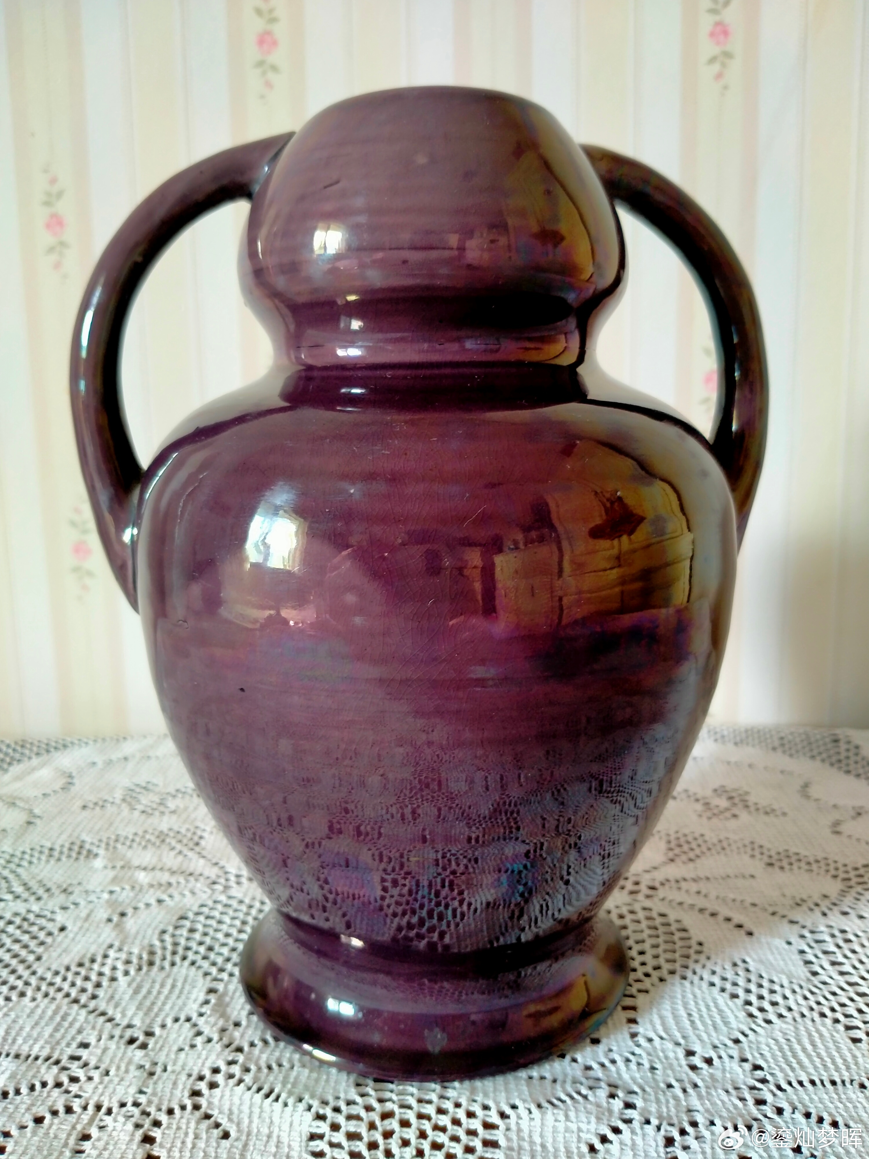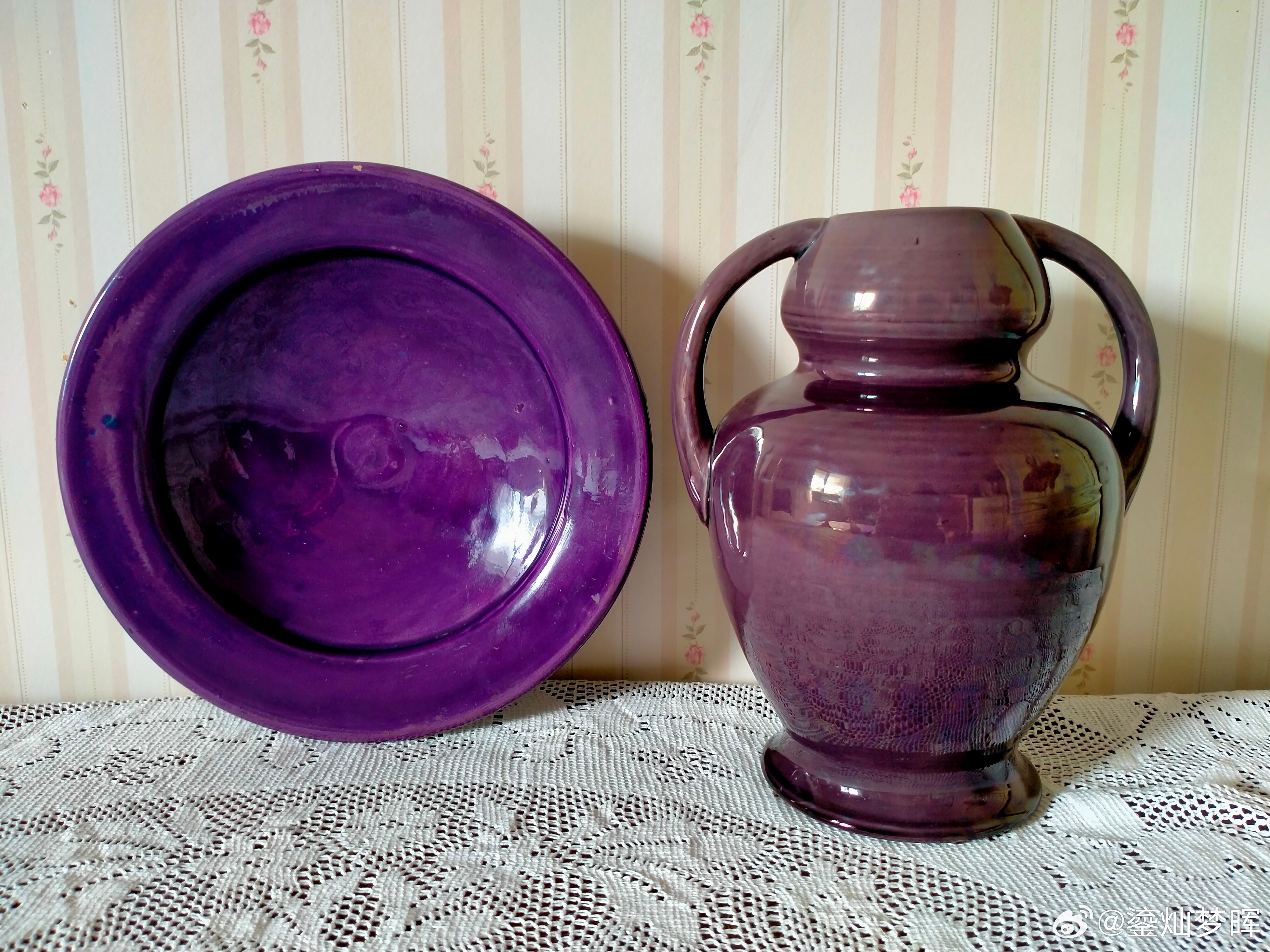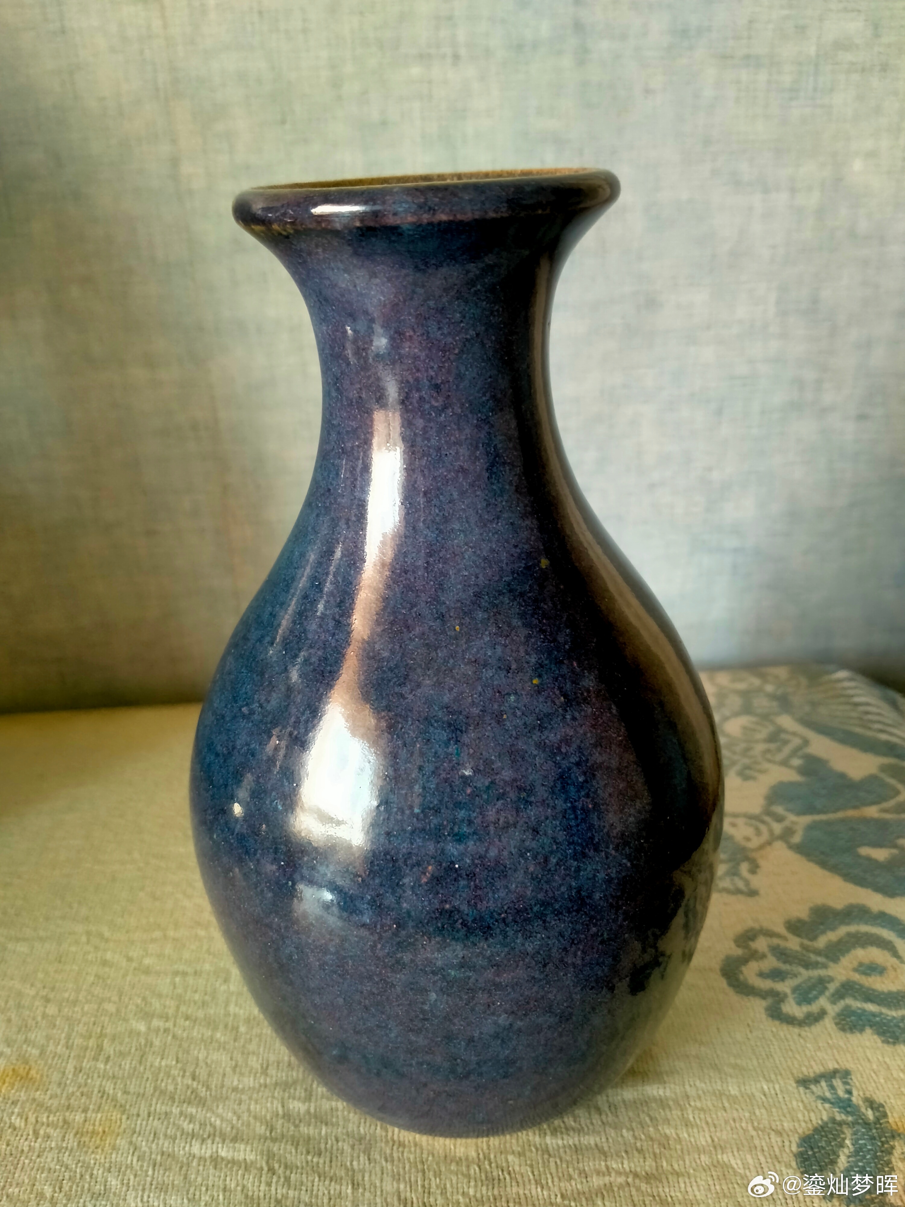 每周鉴赏收藏精品之北宋钧窑紫釉挂盘 北宋钧窑紫釉瓷器,按照现在的鉴赏评说的价值等级,玫瑰紫釉色是最好的,如本件紫釉挂盘;其次是茄皮紫釉色,如图二的双如意而葫芦瓶;而蓝紫釉色要再次之,如图四的小瓶。 玫瑰紫确实漂亮,也对色。自汉代起,都是古代权贵阶层的代表色。价值高也是可以理解的。 本件北宋钧窑紫釉挂盘,基本上是清一色的玫瑰紫釉层,只有一个泛蓝紫的窑变斑点。如果在明代,肯定是高等级的钧窑瓷器。但自清以来到现在,钧窑推崇的是窑变釉,对单色釉钧窑瓷器并不看好。这确实是一个遗憾的事。说明主流的审美更表面化了,某种程度来说,也是浮浅了。个人观点而已。 挂盘属于立件。在瓷器收藏中路份比较高。并且本件紫釉挂盘的直径比较大,立起来与茄皮紫葫芦瓶高度差不多。在北宋时期,这种一尺左右的瓷器,算是比较大的器型了。 如果要说美中不足,就是釉面釉色薄厚不匀,导致紫色浓淡相间。这种状态,在北宋及之前的瓷器中,是普遍现象。有的时候,也是辨别新老的依据之一。 总之,本件北宋钧窑紫釉挂盘,我们认为,还是有很高的文化价值和经济价值。
