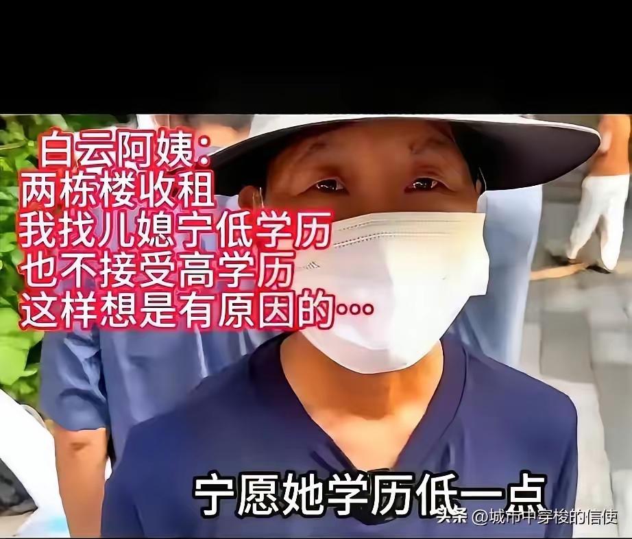 广东佛山一位年过五旬的收租阿姨在街头接受采访时说,硕士博士她都不考虑,因为怕对方“十指不沾阳春水”又“太会讲道理”。 她更想给儿子找个初中文化的媳妇,短短一分钟的视频被顶上热搜,播放量破千万,弹幕里“阿姨年收百万还嫌人家学历高”成为梗热传。 网友评论: 书读多了会有两个结果,一个是努力实现社会价值,为社会创造价值,成为一个真正有用的社会之才!另一个是努力算计别人,精致利己主义者,懒惰,贪婪,自私,爱面子,爱虚荣,心比天高,命比纸薄。 作为广东人,我知道阿姨想表达的不是真的说学历。而是说太娇贵的她们高攀不起,只想找个没有那么高高在上的,实实在在的人。其实没有贬低高学历或者低学历的意思,这个表达真的跟学历没有关系。 学历高的女孩,眼界高,事业心更高。一般的男孩确实配不上。阿姨的儿子想必没有那么那么的优秀,所以,阿姨的想法很实在。 物以类聚,阿姨小学毕业当然要找一个小学毕业的媳妇,我希望我儿子找个女博士老婆!担心找不到。