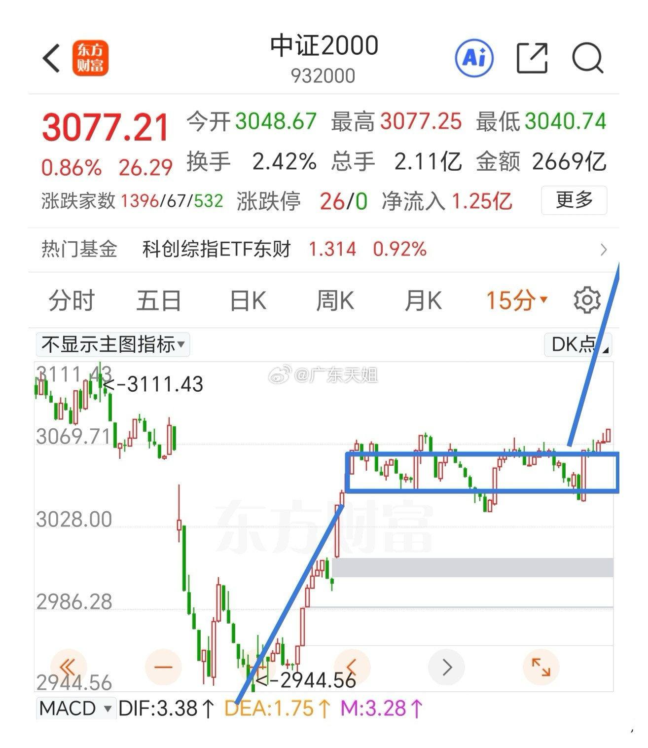 重点观察中证2000,随时可能向上暴走!先说上证指数,今天的走势是不是似曾相识?早盘跌破中枢又拉回中枢,和3922点涨到4034点的那段非常相似,这个结构里出高点高又出低点,反复拉回中枢,最后突破中枢创新高。机会更大的在于中证2000,在结构上是没有跌破中枢下沿的,理论上是可以随时向上走离开段的,距离突破也很近了。今天的量能可能创一个阶段的冰点,严重缩量了,早盘跳水的时候有一股力量又给拖起来,可以看到它们干一波就不再出力了,盘中证券保险直线拉升,盘子翻红就没有动作了,比较磨人[流泪]看看下午中小盘能不能一飞冲天吧