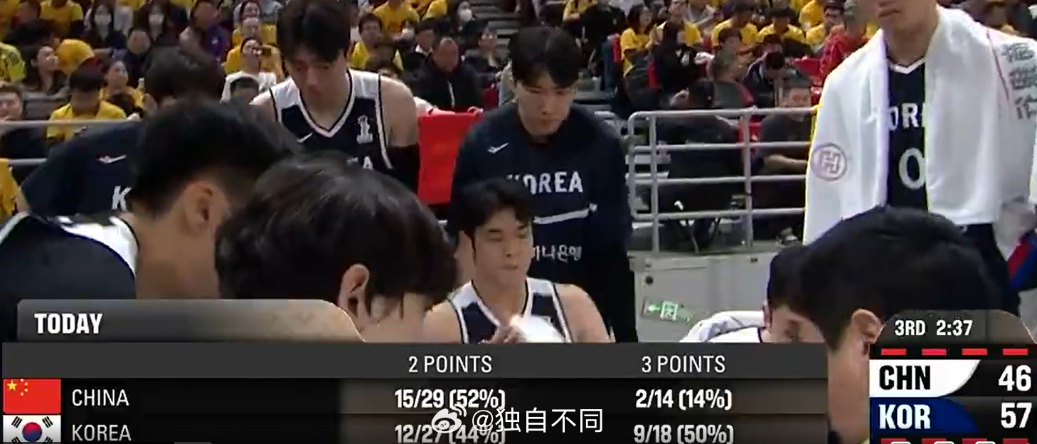 这场比赛打到第三节末段,两队的三分命中率相差十分悬殊。投三分这事,一是基本功;再者就是体现了球员的心态,今天咱队员的心理包袱太重了。中国男篮vs韩国男篮