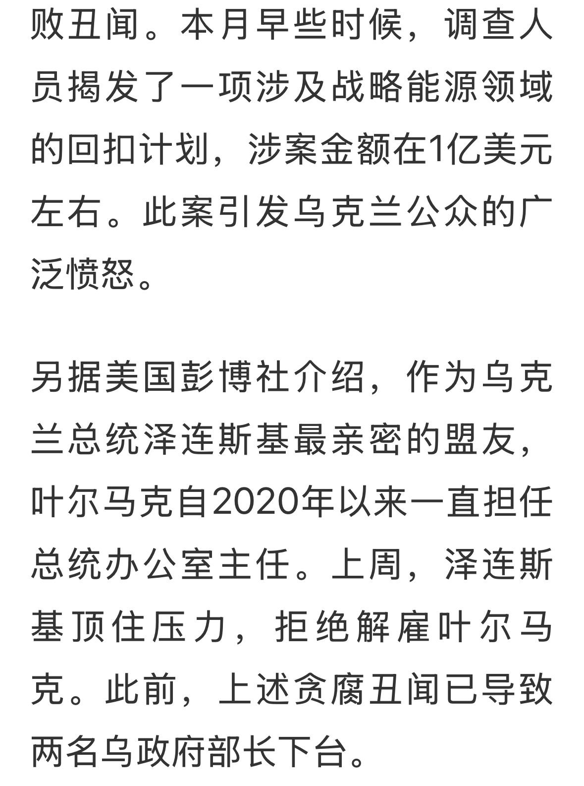 最新重磅消息!乌克兰总统办公室主任辞职,刚刚说积极配合反腐败局调查,突然就又辞职