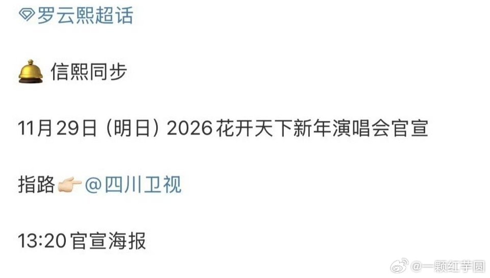 罗云熙明天官宣2026花开天下新年演唱会!