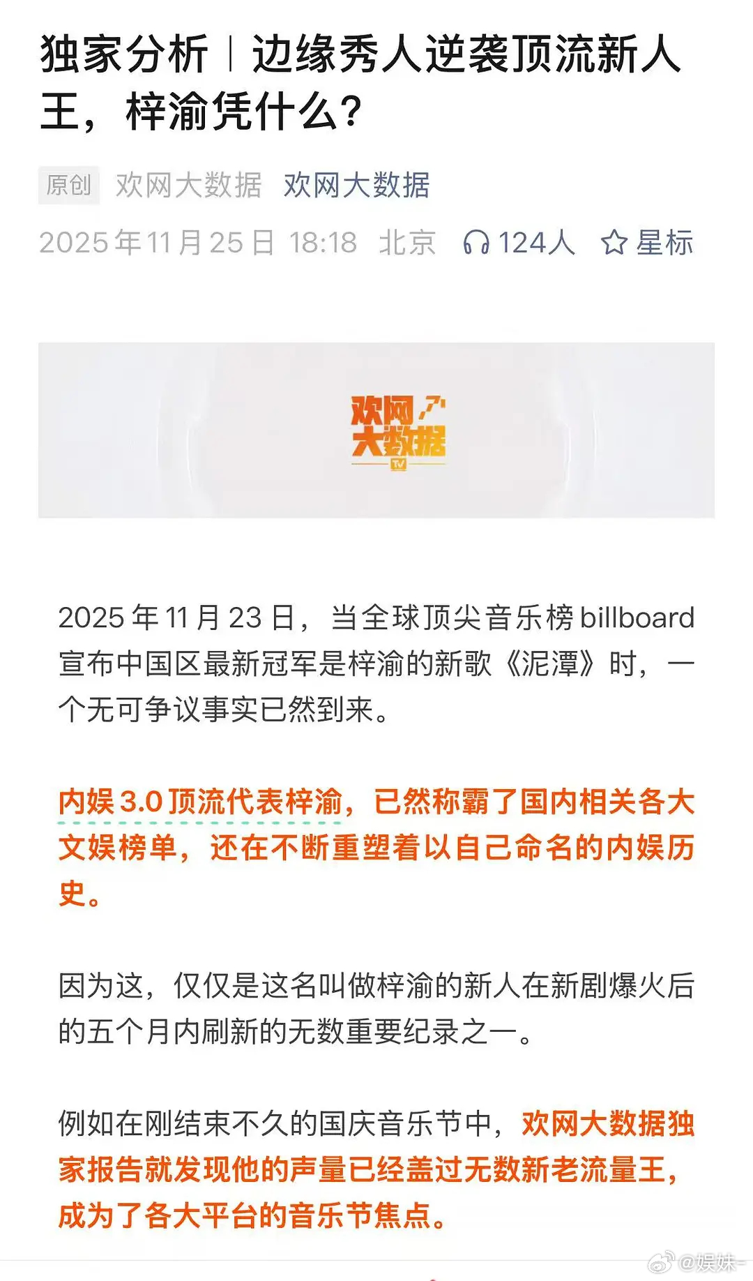 我理解的顶流评判标准,1.0是四大三小时期2.0博君一肖时期,3.0梓渝,中间几年其实都没啥人动摇过,梓渝的确实冲击了老顶,开启了新篇章