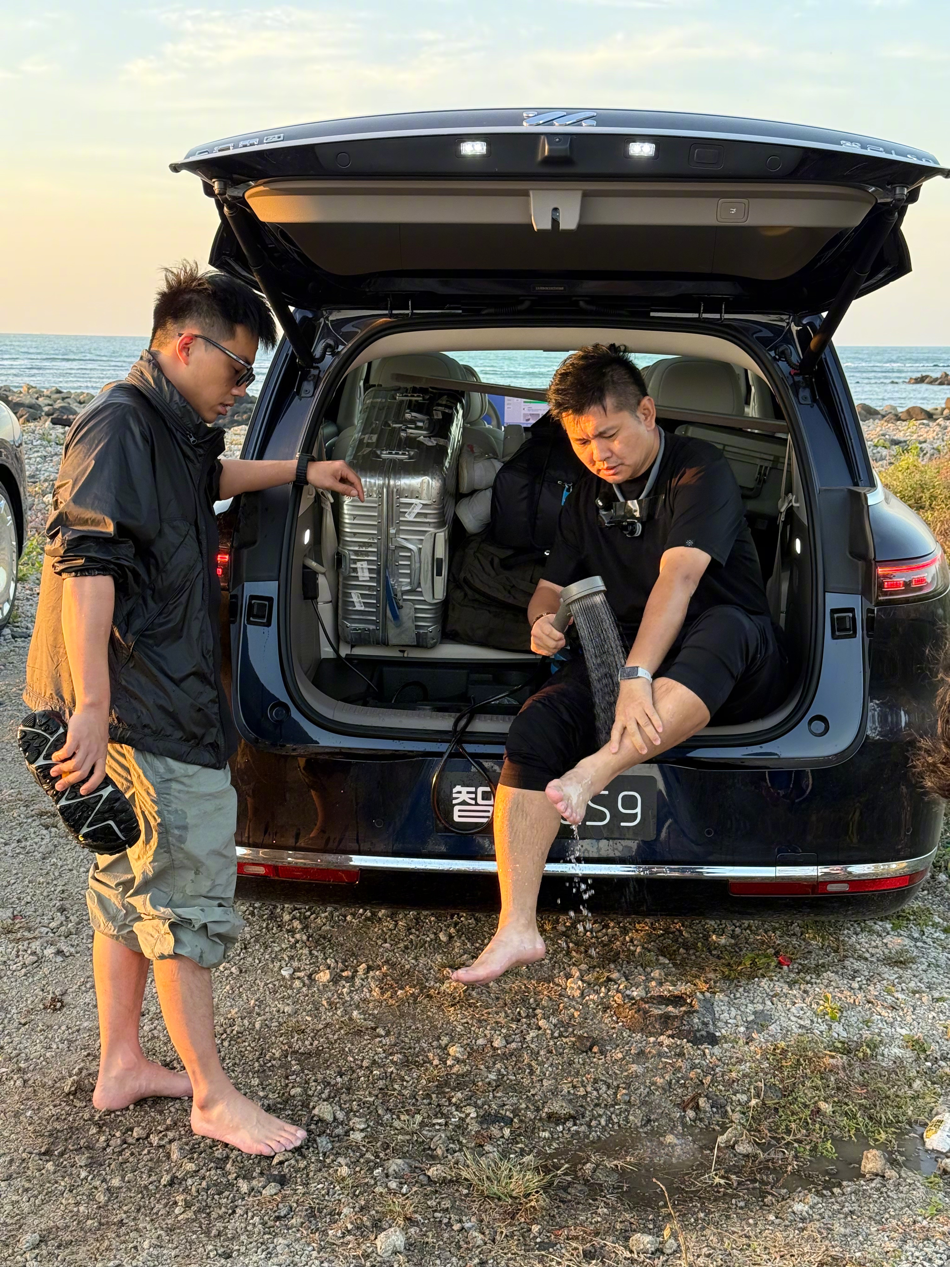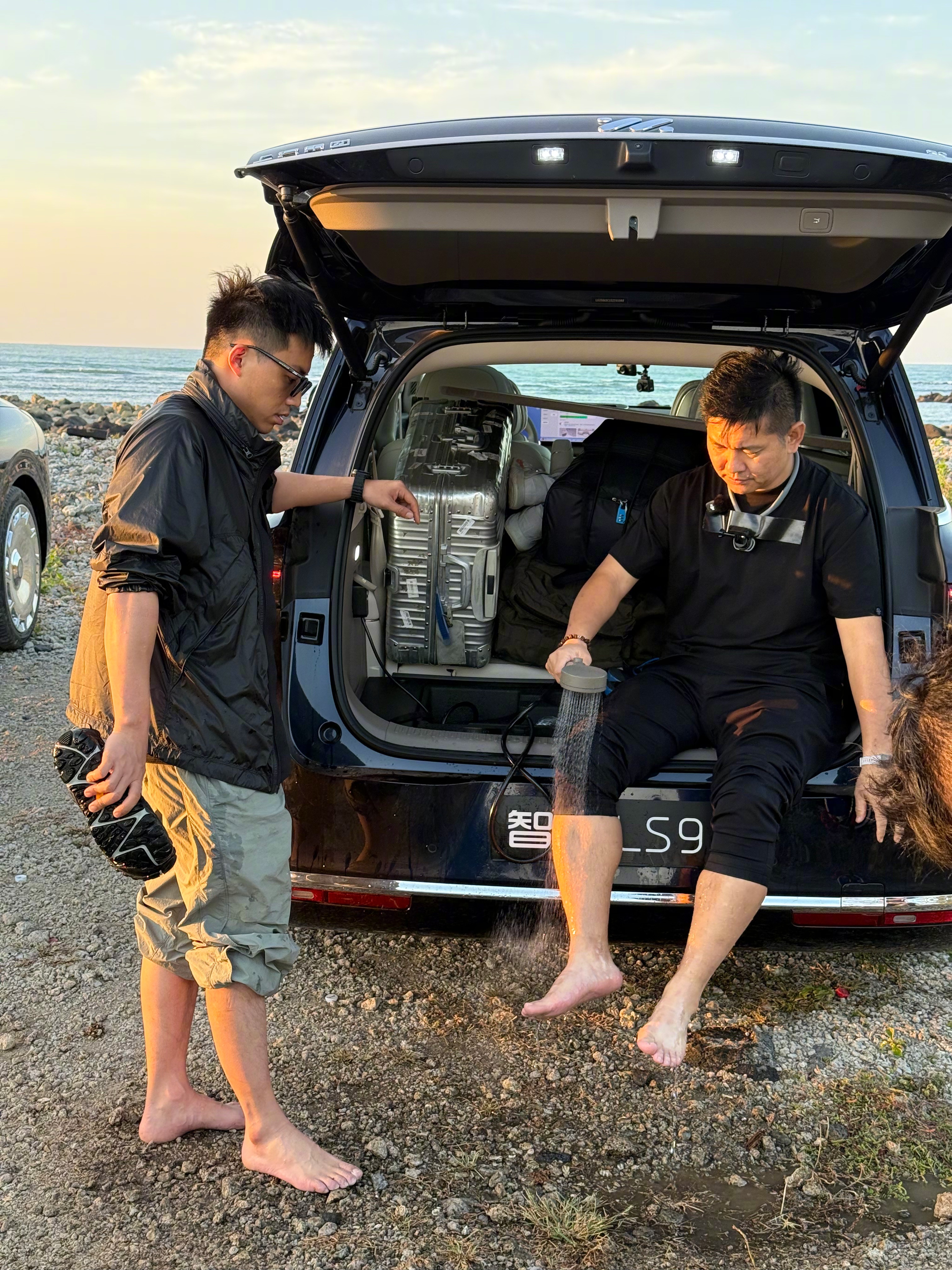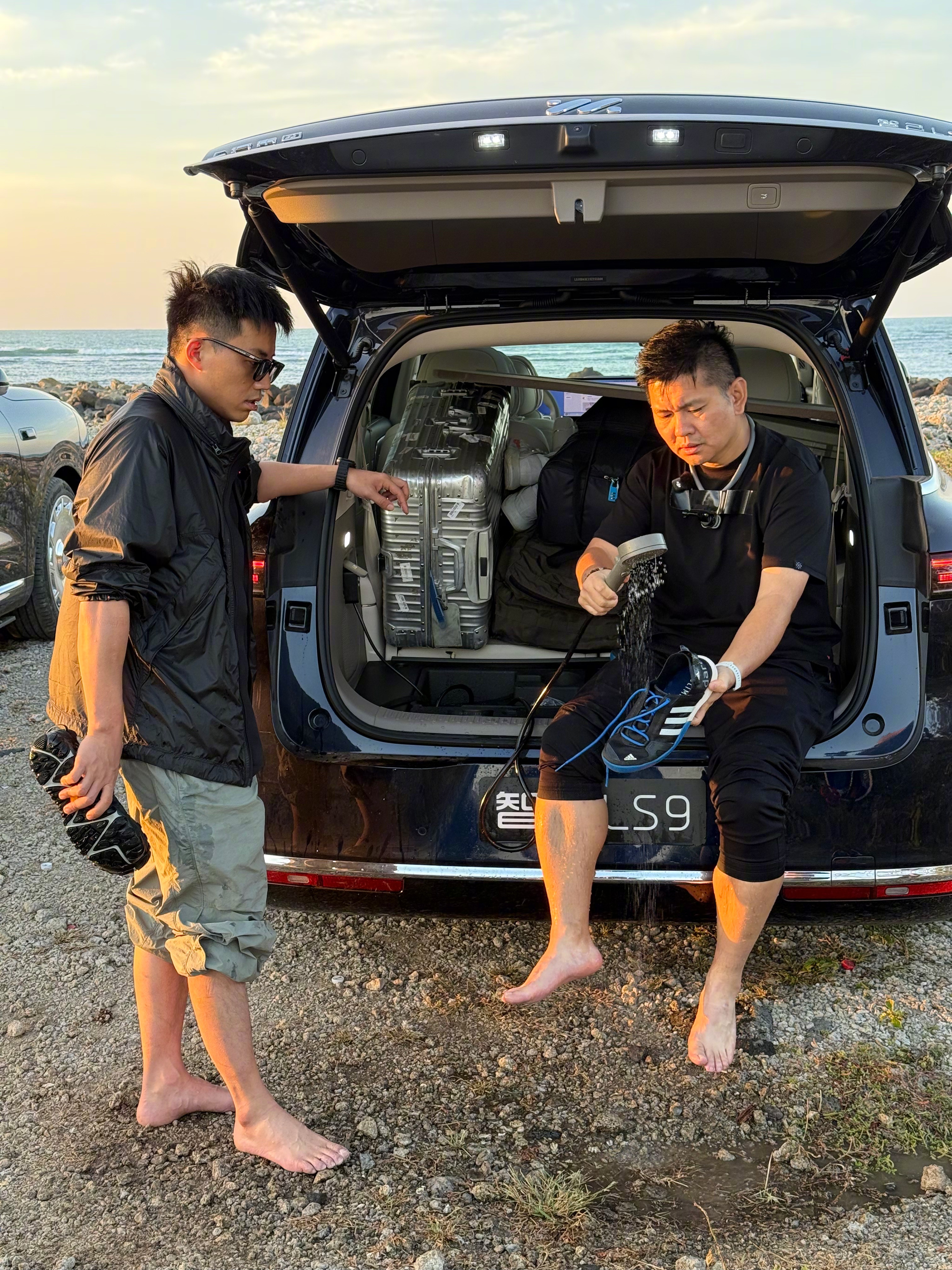 大家老说高级野奢户外,我觉得智己LS9车上这10升后备厢电热水系统,真的做到创新且实用,完全不为了装逼。今天赶海回来,脚上都是沙子、海水也有盐分,直接穿袜子和鞋难受,冷水洗脚也不舒服。LS9这10升水箱+电热水系统,外加个花洒,正好可以热水冲脚+洗下溯溪鞋,真的很舒服!关键是在地板下,不会单独占用后备厢空间,不碍事。我觉得这才是体验最佳的车上户外设备的创新。洗完了jio,就能踏实看日落煮面了,舒服。
