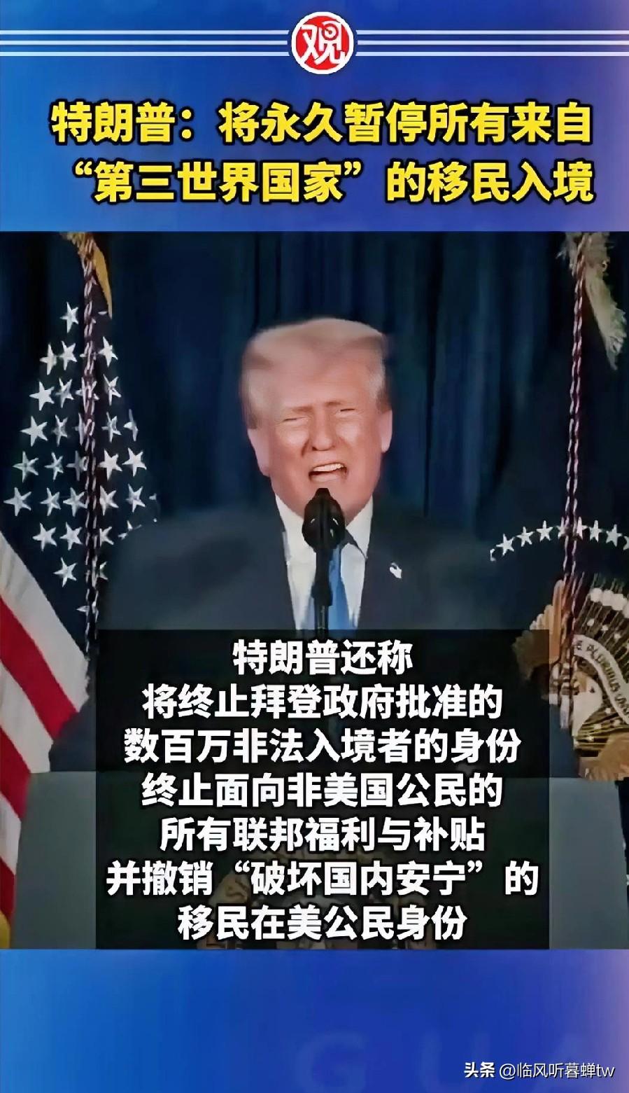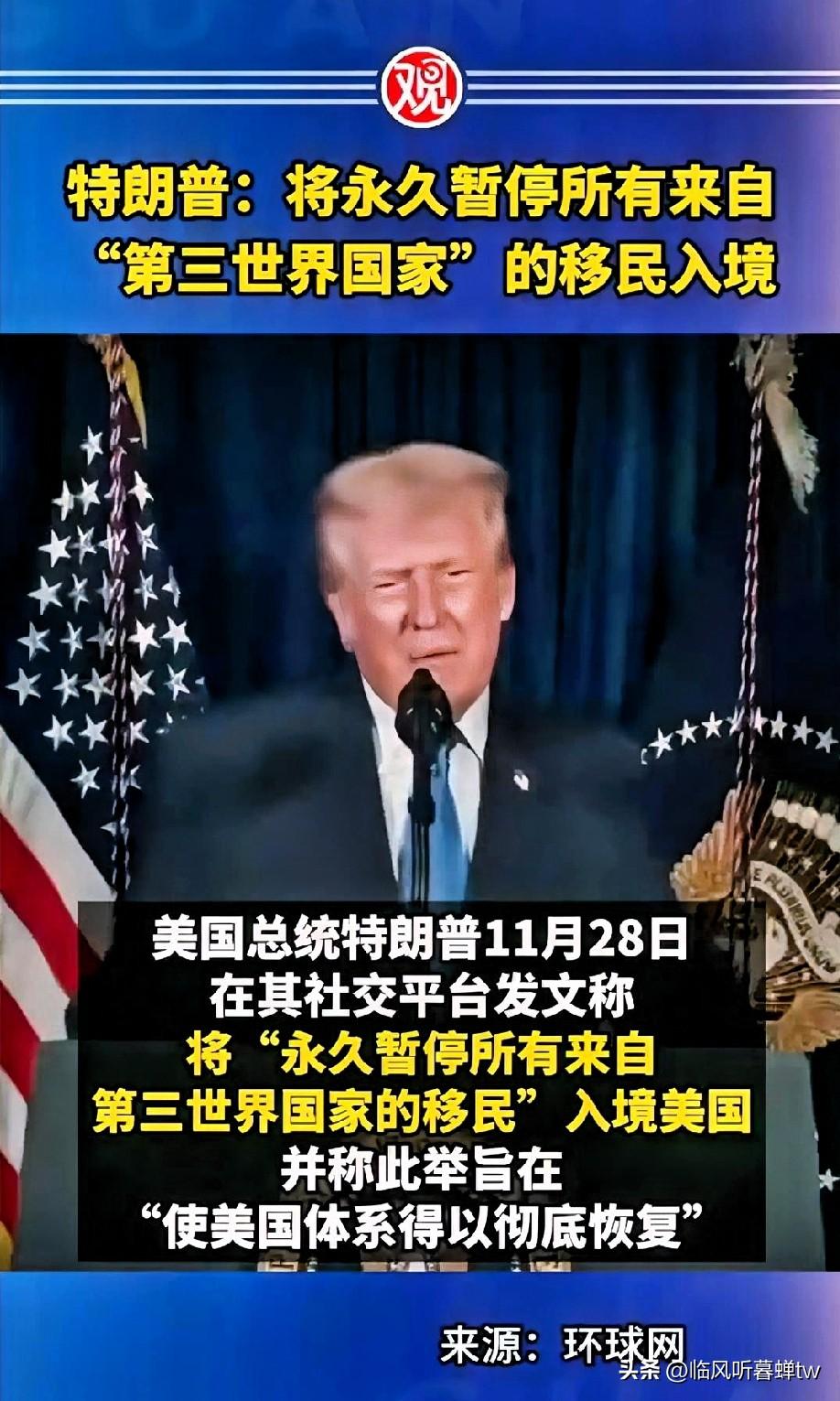 特朗普宣布永久暂停第三世界国家移民入境引发广泛关注 2025年11月27日