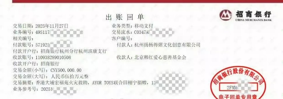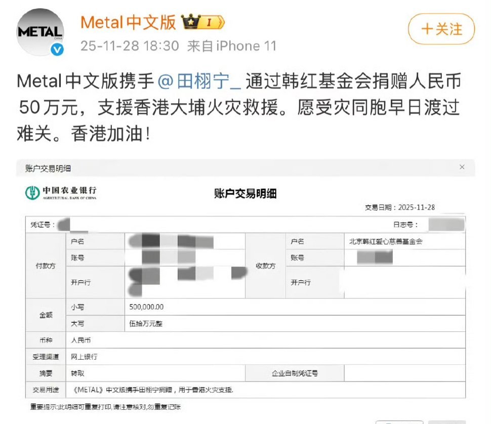 田栩宁携手华策经纪、Metal中文版、AYORTOYS潮玩捐款130万驰援香港