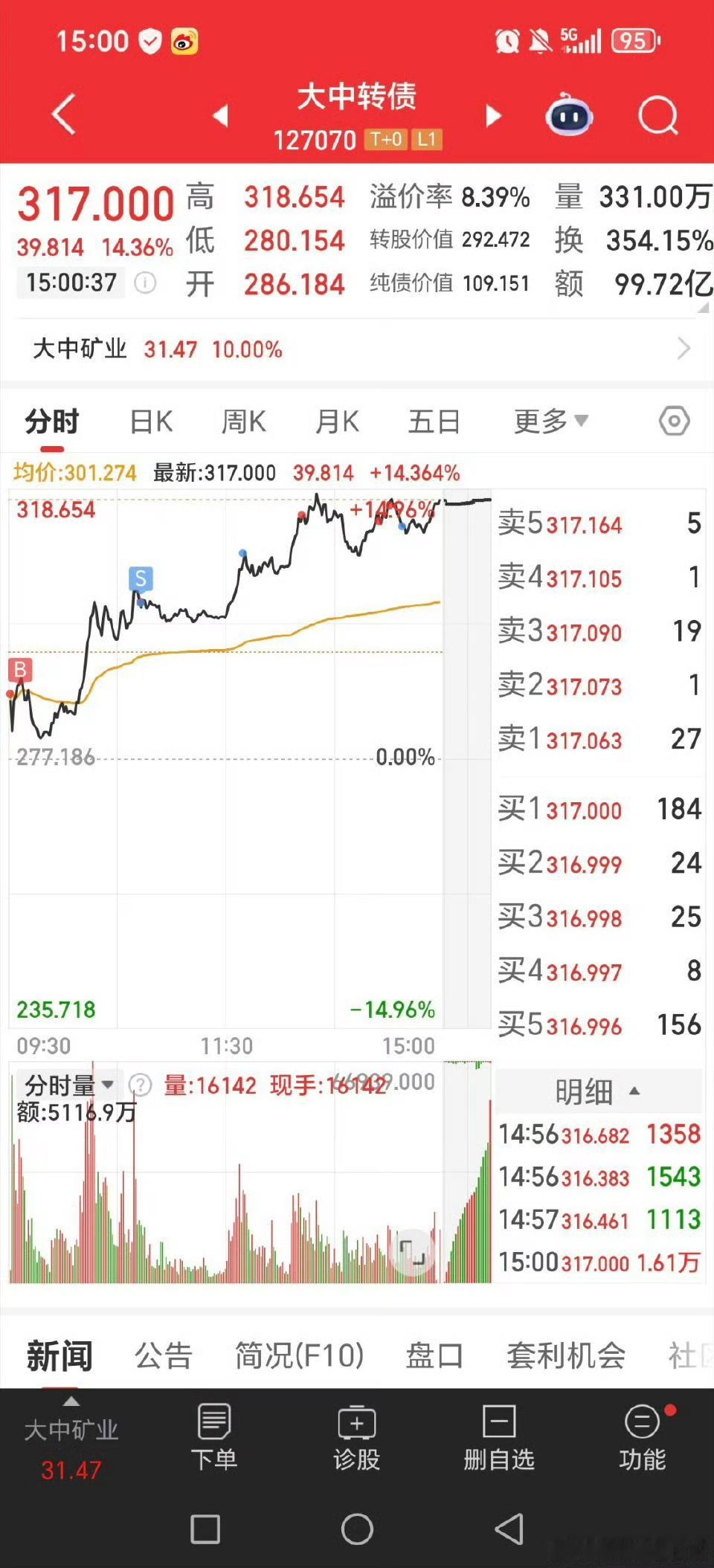 可转债复盘最强还是稳哥提的大中转债,也是这周最强的!!!周二周三大涨,今天再次大涨,最强的!!国城转债弱些,其他的天源转债,冠中转债都是环保的,之前大涨的东时转债尾盘拉起来可!!可转债关晓彤听分手歌100多遍鹿晗知道吗