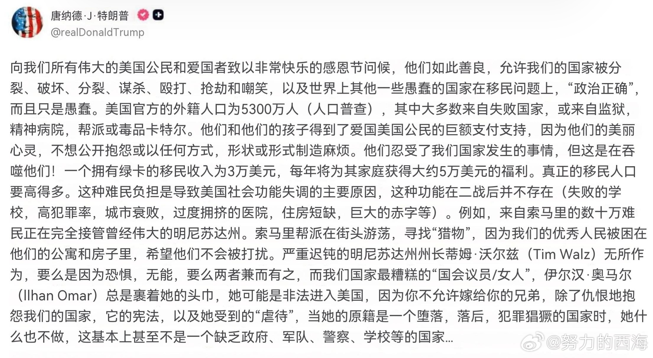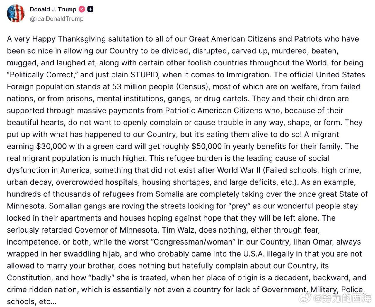 特朗普表示,他的政府计划“永久暂停”来自所有“第三世界国家”的移民。海外新鲜事热点现场