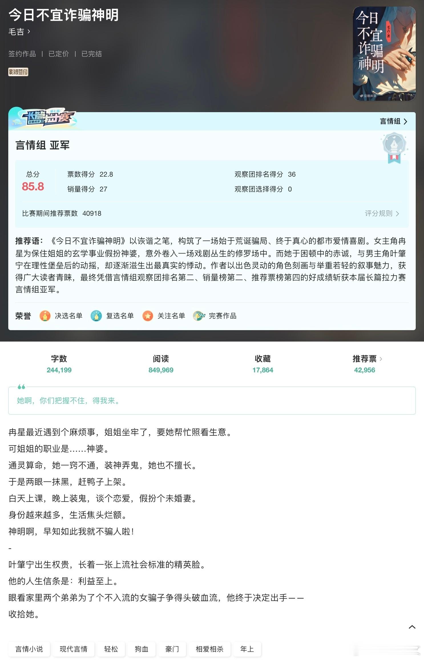 这本《今日不宜诈骗神明》真是烂尾……完结得无比突兀……我怎么坚持看完的😵💫