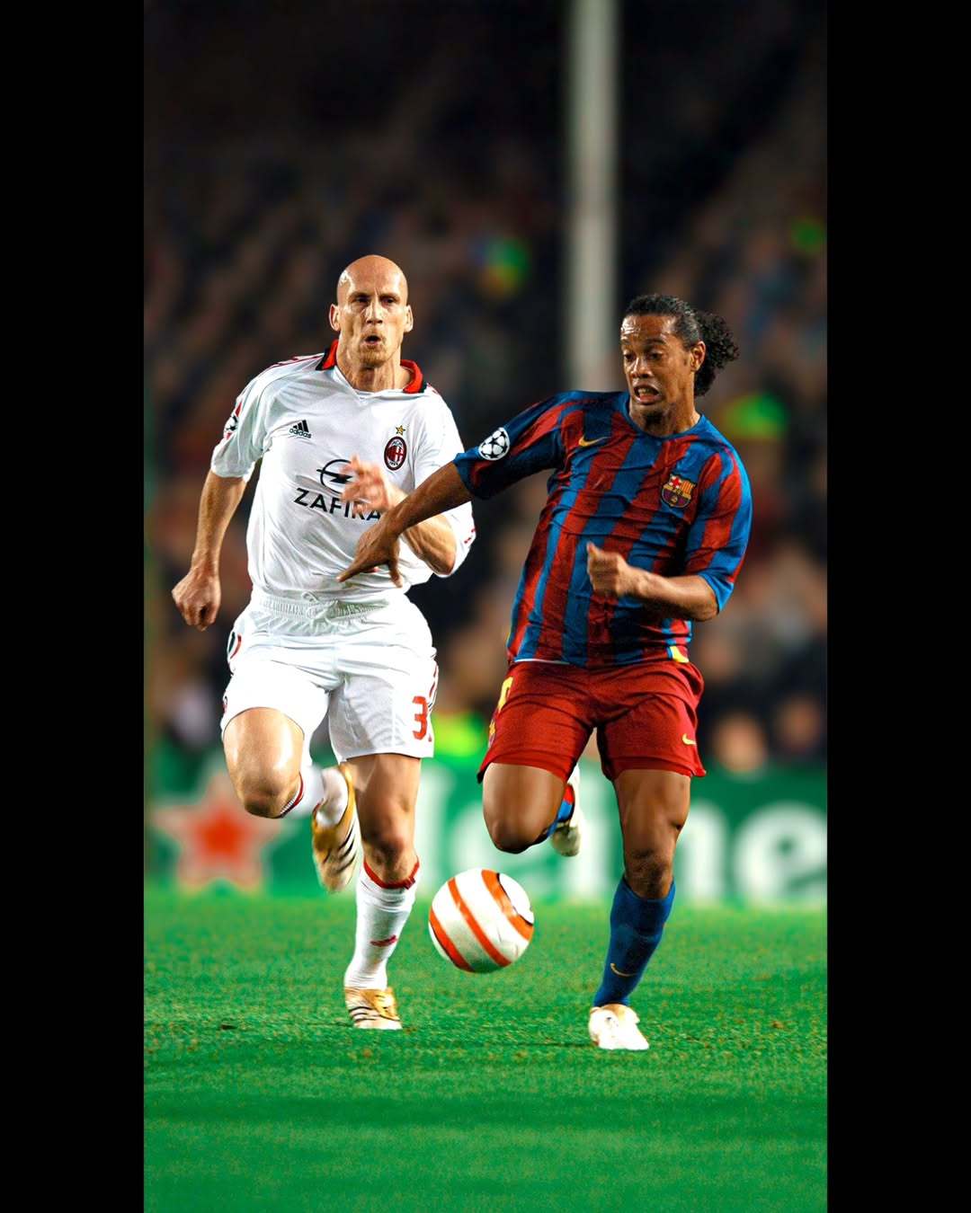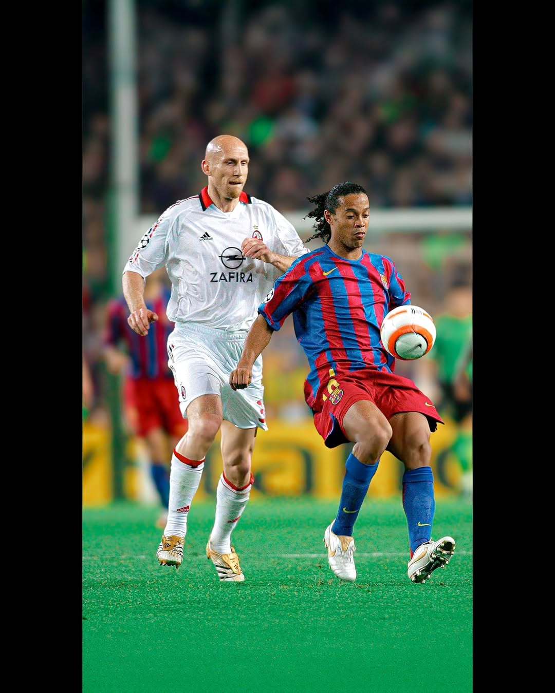 2005/06赛季欧冠联赛半决赛次回合,巴塞罗那对阵AC米兰,诺坎普球场上演了一场胶着的0-0平局。当晚罗纳尔迪尼奥带队冲锋,巴萨稳守防线,成功锁定决赛席位。🔥💙❤️足球西甲