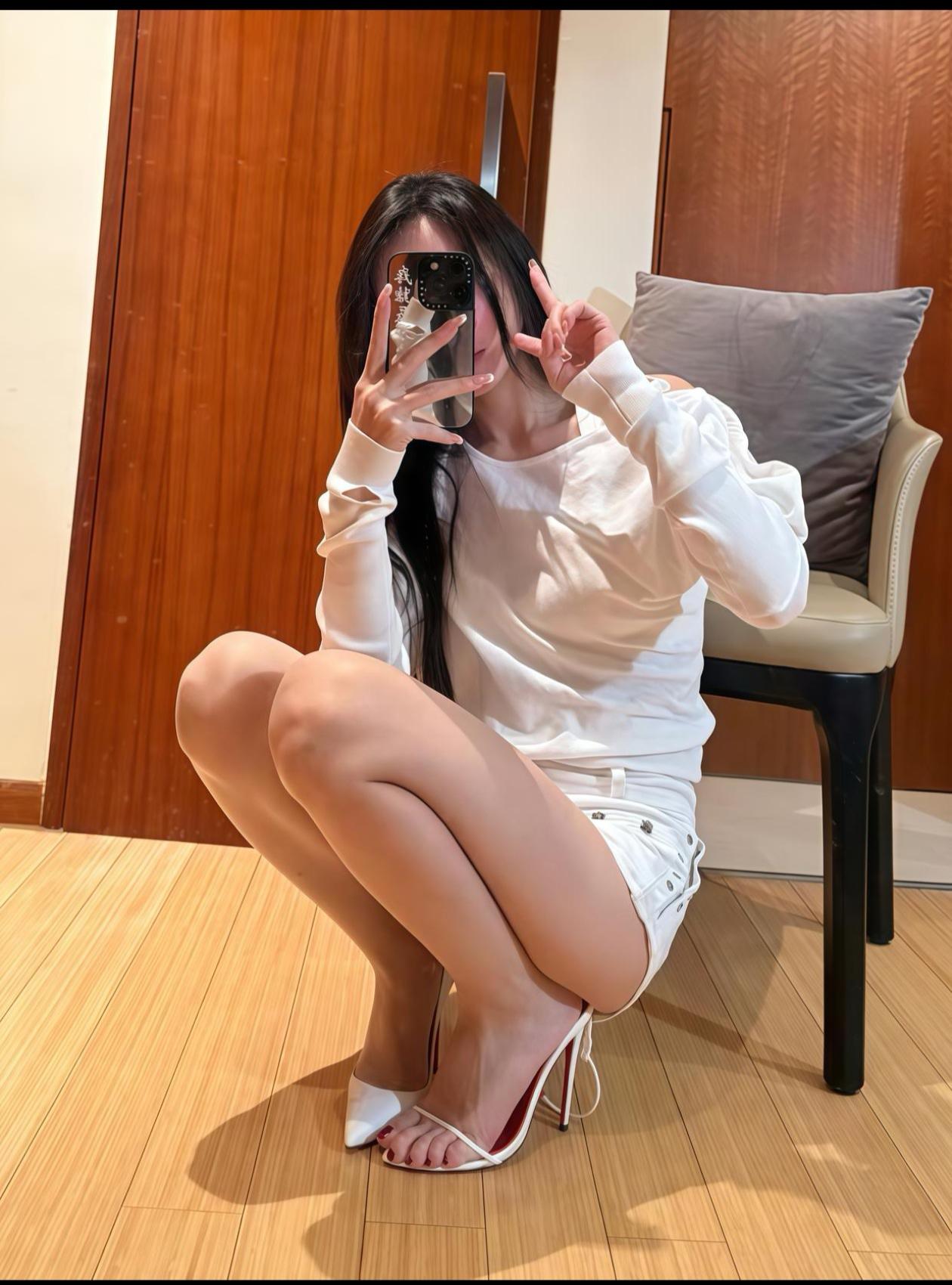 白色露肩上衣搭配黑色内搭,踩上尖头高跟鞋,简简单单的黑白配也能很有态度~ 蹲拍新姿势get✅ 手机一挡,氛围感直接拉满!