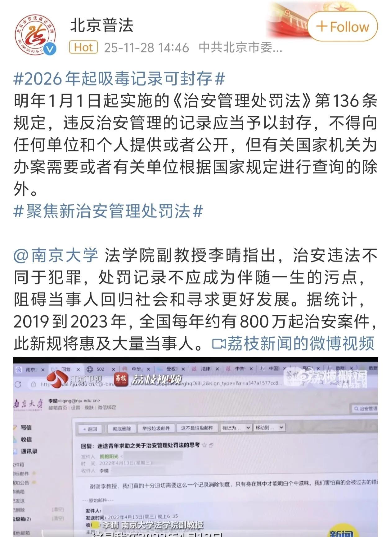 南通文旅彻底火了,仅仅一天时间,粉丝就涨到400多万,而各地文旅则相继跟进。 治安管理记录封存可以理解,但不能一刀切,比如大家提到的XD问题,就不应该被封存,谁都不希望自己的同事是个瘾君子,而这个基本上是戒不掉的。 民意如此,有关部门制定法律法规的时候还是要多考虑下。