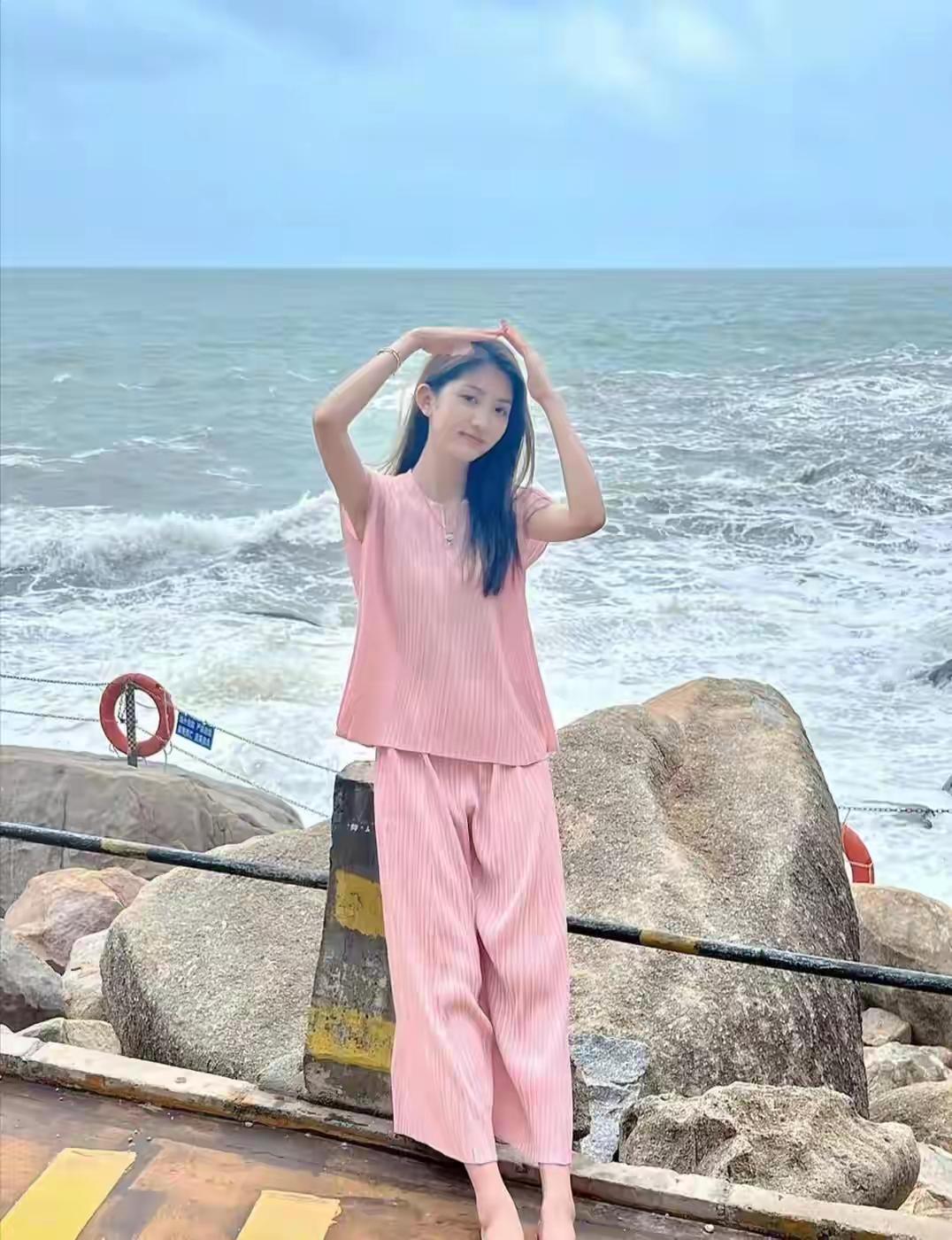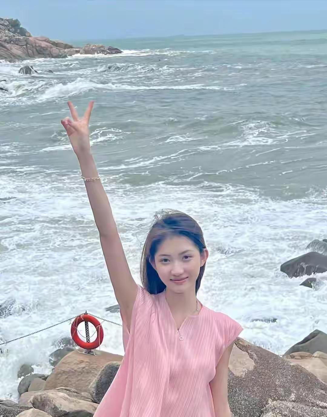 海边少女,粉裙飘逸,海风轻拂,温柔时光。温柔白裙少女