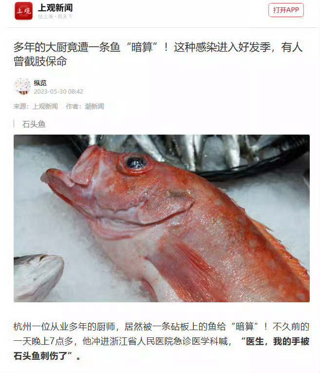女子处理海鲜被刺伤导致多器官衰竭一直强烈建议处理水产品一定戴手套!!处理河鲜也戴。因为创伤弧菌(“食肉菌”)可能在店里就交叉污染!危险。⚠️¹ 家里常备丁腈手套。普通线织手套没用,有个感染病例戴了线织手套仍被刺破感染。² 每一年都有创伤弧菌感染致截肢或死亡的。中午刺伤,晚上就红肿麻木,发低烧、打寒战、脓血症,进ICU!热点科普