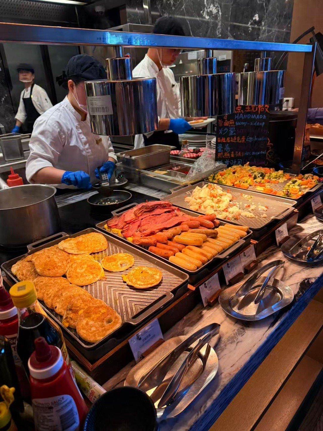 金普敦苏州竹辉酒店的早餐十分丰盛,分热菜和冷菜部,服务也很周到。访问了大堂洗手间