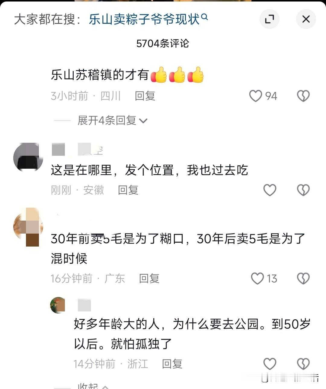 你们知道四川“粽子爷爷”的故事吗? 这位被大家亲切称呼为“粽子爷爷”的老人今年91岁了,住在四川乐山,因为爷爷的粽子坚持不涨价被大家给熟知。 据说当年爷爷为了养家糊口做起来了粽子买卖,最早是2毛钱一个,到2009年粽子才提价到5毛钱一个,之后到现在一直没涨价。家人和邻居都劝爷爷涨价,一方面是5毛钱不好找零,另一方面确实现在材料都已经上涨,5毛钱的粽子就是亏本生意。但爷爷始终坚持自己,一直都是5毛钱的价格。我想爷爷买的是情怀。就像爷爷自己所说:每天都会有人想吃,有附近打工的2元钱可以吃4个、有上学的孩子1元可以吃两个,都可以垫垫肚子。 爷爷每天凌晨2点就开始起床煮粽子,5点多准时推着三轮车到街口出摊,一天只卖90多个粽子,卖完就回家。爷爷说每年只给自己放三天假,正月初一、五月初六和八月十六,因为这三天大家都不会买粽子。光这一份坚持就已经令人敬佩了!爷爷的粽子味道也是相当不错的,会提前浸泡粽叶,再用笋壳叶包住粽子,准备的有芝麻花生白糖、翻炒红糖浆两种蘸料,可以说爷爷对粽子的品种和味道一点都不马虎。因为价格便宜、味道正宗,大家都亲切的称呼爷爷为“粽子爷爷”。2025年端午节前后,爷爷的故事在网上火了,不少旅游博主和游客专门过来打卡,出摊半小时就被抢光了。 因为爷爷的年龄偏大了,当地的爱心人士害怕爷爷凌晨出摊不安全,专门给爷爷送了反光背心、反光贴,还提醒爷爷一定要注意安全。后来陆陆续续有很多人都过来看望爷爷,有送牛奶的、饼干的,还有给爷爷拍照的。爷爷现在依然每天坚持出摊,说“老了没事干,包粽子可以打发时间,也能让年轻人吃口热乎的早餐”。 真心祝愿粽子爷爷身体健康! 竹筐爷爷 乐山老爷爷 阿婆包粽子 奶奶的粽子教程 爷爷包粽子 乐山甘蔗奶奶 刘老伯粽子