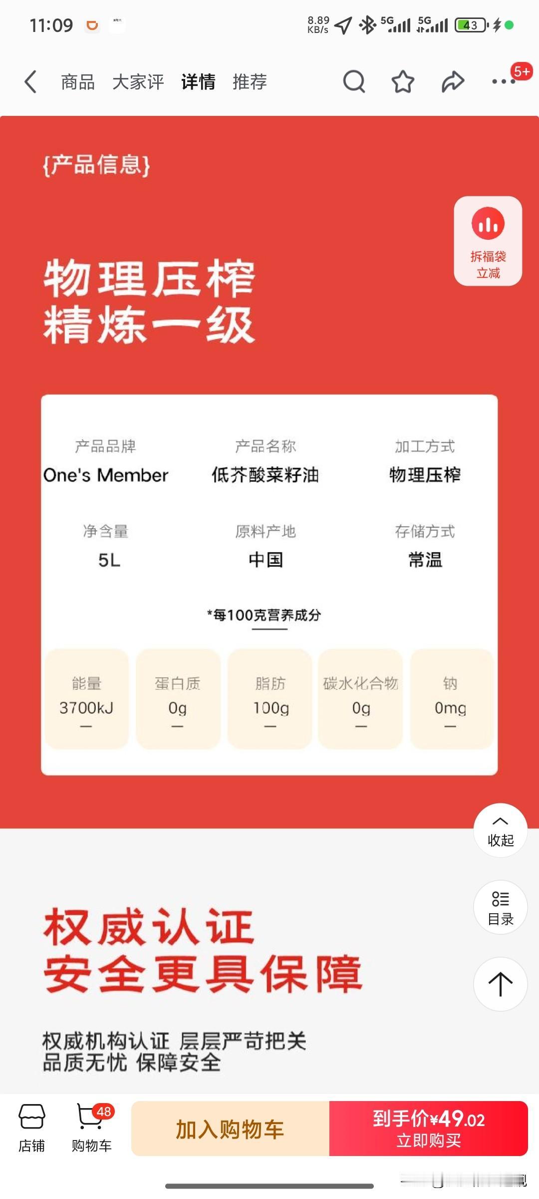 京东真没让人失望!以前老收到京东这款油的推荐,一直没买,现在才晓得,它竟是性价比最高的植物压榨油。物理压榨的油最健康,没破坏油的结构,也没掺杂有害物质。以后买油得好好看看制作工艺,精炼的就别买了,精炼油从制作工艺上就不健康! 兰世立 食用油