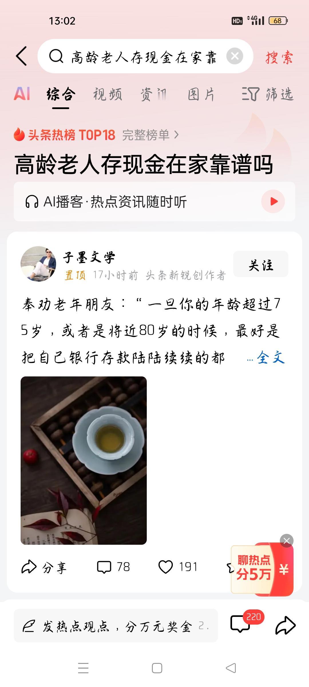 高龄老人存现金在家靠谱吗? 据子墨文学报道,奉劝老年朋友:一旦你的年龄超过75岁,或者接近80岁的时候,最好把在银行的存款陆陆续续地都搬回家来,关于高龄老人存现金在家靠谱吗?个人认为,存少量现金没问题,可是存大量现金就会出问题,为什么呢?个人认为,所谓财不外露,一旦老人露出口风,或者有人惦记着,就麻烦了,也许因为这笔钱还会惹来大麻烦,个人认为,存大量钱要不买个保险箱,也许可以解决问题。但也有问题,一旦记不住密码,打不开也麻烦。个人认为,还是需要委托可靠的人替老人打理。各位条友觉得呢?