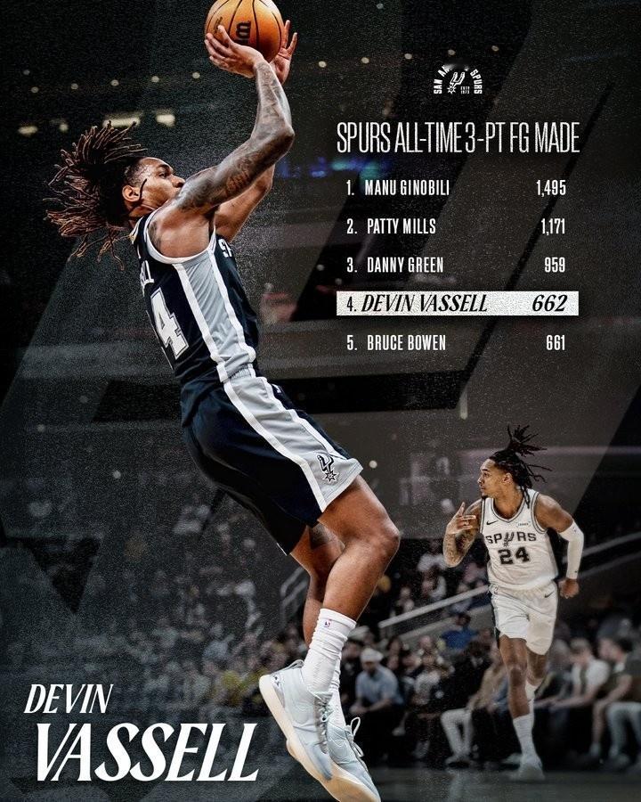 瓦塞尔三分命中数超越鲍文升至队史第四🎉超话创作官 |马刺vs掘金 |圣安东尼奥马刺