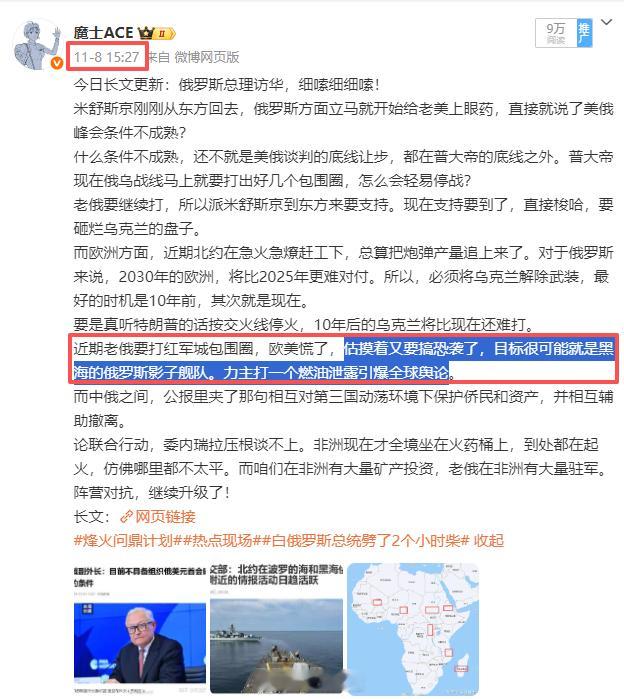 两艘油轮在黑海发生爆炸烽火问鼎计划普京宣布与乌克兰停火条件一切都在预判中乌克兰终究还是打黑海油轮了。28日晚,两艘俄罗斯影子舰队的油轮,“凯罗斯”号和“维拉特”号油轮,正准备前往土耳其海峡,然后就被乌克兰的无人机给打了。从视频画面来看,火光闪闪,燃烧的火焰飞天。主要打的是后面的发动机舱,前面的油舱貌似还没泄露。对于乌克兰打黑海油轮这事,早在8月份就开始预警了,那个时候就感觉乌克兰要动手,只是在寻找情报支持和训练以及打击时机。11月初,更是感觉要动手了,训练和情报支持已经完成,只是在等待时机。11月末,时机到了。乌克兰打击俄罗斯在黑海的油轮,目的很简单——阻碍俄罗斯影子舰队的原油出口,打击俄罗斯的原油收入和持续战争能力。越是接近谈判与俄乌和谈,越是可能干这个事。因为这是乌克兰歇斯底里手里为数不多能打出来用的牌。只不过就是,这个牌打出来,需要把控度。打油轮,极度容易造成原油泄漏和大面积海洋污染,这就很微妙要观察周边国家的反应。原本欧洲方面和乌克兰的计划打击是两个方向,一个是波罗的海,一个是黑海。但是波罗的海,那可是乌克兰的欧洲爹的腹地,要是波罗的海原油泄漏燃烧,对于欧洲老汉们和白左来说,那简直是环保噩梦和经济悬崖。想象一下海的女儿雕塑在海边一望无际的黑色原油,那得多难看,丹麦的旅游业还搞不搞了。所以最终乌克兰还是选择苦自己一把,选黑海。黑海沿岸都是一些不入流的国家,有污染也担着。特别是土耳其,刚好还能倒逼土耳其对俄影子油轮关闭海峡,不然油轮被击沉的地方,只会越来越接近土耳其海峡,最终会让土耳其经济受损。如果说,乌克兰故意选择在土耳其海岸附近越来越多打击俄罗斯油轮。你说土耳其是会选择站俄罗斯一边打击乌克兰的无人机和无人艇,还是不得不宣布禁止俄罗斯油轮过海峡?乌克兰的阴谋,是想威逼土耳其松动中立立场,不然海峡生意就难做了。但土耳其埃苏丹何许人,也必然不会顺乌克兰的方向走。乌克兰敢到土耳其沿岸打油轮,那乌克兰的卖粮船也别想过去了。这波博弈,完全取决与,乌克兰还有多少粮船要过土耳其海峡。现在的状况,是俄罗斯原油黑海出口受阻,全球原油供应略微受到影响。美俄欧乌都在围绕俄乌停战的事谈判,欧乌方面掏了一张筹码,现在又轮到俄罗斯出牌了。乌克兰现在陆战如野狗脱缰,完全只剩跑路。空战也是心有力而肌无力。只剩海战,老俄海军最弱,乌克兰虽然也没啥海军,但这种不对称打法,是目前乌克兰最优解。俄乌战争,要朝着黑海破袭战模式前进了!