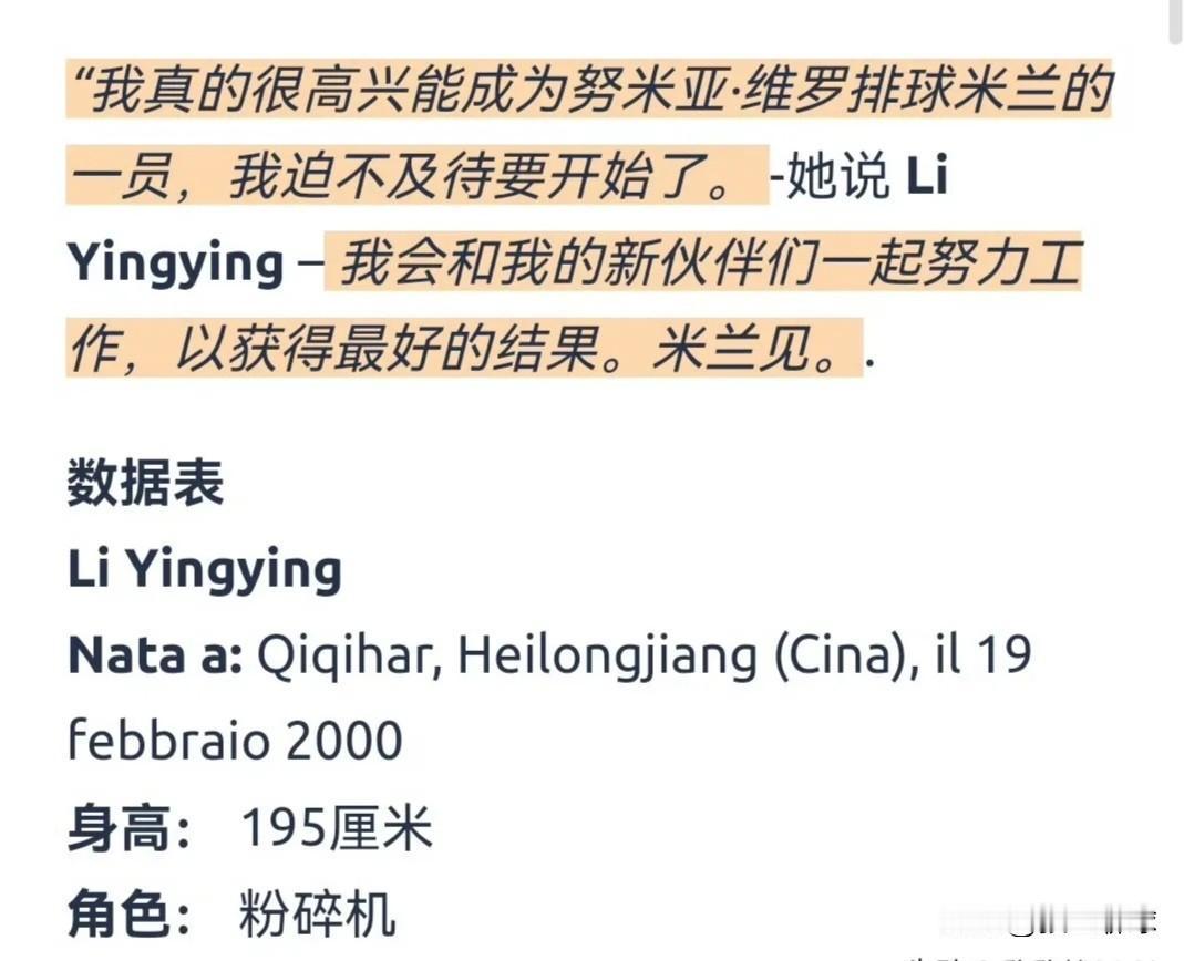 李盈莹还没有到位,意大利球迷就兴奋的不行了,给李盈莹起了个绰号叫“粉碎机”,意思是很厉害啊!管你对手是谁?到这都给你压碎成粉末,哈哈,挺逗的!