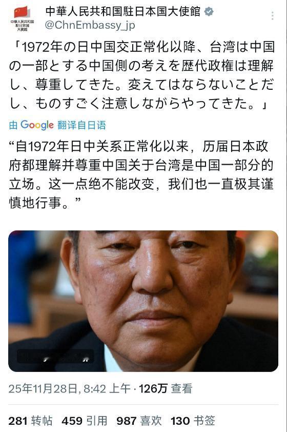11月29号,在中国驻日本大使馆的官方账号转发了石破茂认同“一个中国”的相关言论之后,他可以说成为了日本右翼媒体和政客抨击的焦点。 作为日本前首相,他在政坛深耕多年,既有扎实的政治根基,又在保守派阵营中拥有一定话语权,这样的人物公开亮明认同“一个中国”的立场,自然比普通议员的表态更有分量,也更让右翼势力难以接受。 要知道,此前日本首相高市早苗刚刚发表涉台错误言论,导致中日关系出现波动,在这个节点上,石破茂站出来强调历届日本政府都理解并尊重“台湾是中国一部分”的立场,相当于直接反驳了高市早苗的观点,这在右翼看来就是“胳膊肘往外拐”。 右翼媒体和政客骂他“卖国贼”,甚至造谣说他的言论被中方利用成宣传工具,这些抨击其实没什么站得住脚的依据。 石破茂的相关表态根本不是所谓的“迎合中方”,而是在东京的公开演讲和日本电视节目中提出的,内容里不仅强调“一个中国”是历届政府的一贯立场,还直白点出日本经济对中国的依赖——从老百姓吃的食品、工业生产离不开的稀土,到医疗领域的部分医药品,很多都要从中国进口,他那句“没有与中国的关系,我们的国家还能成立吗?”,其实是点破了日本社会的现实需求。 右翼之所以急着扣帽子,本质是因为石破茂的话戳穿了他们“对华强硬”的虚假面具,让他们无力从逻辑上反驳,只能靠造谣转移视线,比如编造“石破茂接受中国媒体采访才说这些话”的谎言,可明眼人都能看出来,这些言论的原始来源都是日本本土媒体,中方只是客观转发了而已。 有人把他称为“第二个鸠山由纪夫”,这个类比确实有几分道理。 鸠山由纪夫当年担任日本首相时,就主张改善中日关系,强调正视历史,后来也因为坚持理性对华立场遭到右翼势力的持续打压,最终在政治上遭遇挫折。 现在石破茂的处境和鸠山有相似之处,都是在右翼势力主导对华强硬论调的氛围里,敢于发出理性声音,也都因此成为攻击目标。 但两者也有不同,鸠山当时更多是从历史认知和外交理念出发推动中日友好,而石破茂的表态更侧重于现实利益考量,把“一个中国”立场和日本经济民生的实际需求直接挂钩,这种务实的表述方式,其实更能打动日本国内的中间派和务实派群体,这也是他和鸠山相比,可能拥有更持久政治影响力的原因之一。 石破茂的表态不是一时冲动,而是经过深思熟虑的,他在11月23日的电视节目里就已经批评过高市早苗的涉台言论,提醒现政府要像历届政府那样“小心、小心、再小心”处理中日关系,26日的演讲不过是进一步明确立场。 更关键的是,他的声音不是孤立的,日本前首相野田佳彦也公开表示高市早苗需要向中方解释,公明党党首齐藤铁夫同样批评高市的言论破坏中日关系,就连鸠山由纪夫也发文指出高市的错误言论给日本造成了难以估量的损失。 这说明日本政坛内部并非铁板一块,理性务实的力量一直存在,而石破茂作为其中的代表性人物,凭借前首相的身份和跨派系的影响力,很容易成为这些理性力量的凝聚点。 从中长期来看,中日关系要实现破冰,核心还是需要双方都有敢于推动务实合作的政治力量,而石破茂恰好具备这样的潜力。