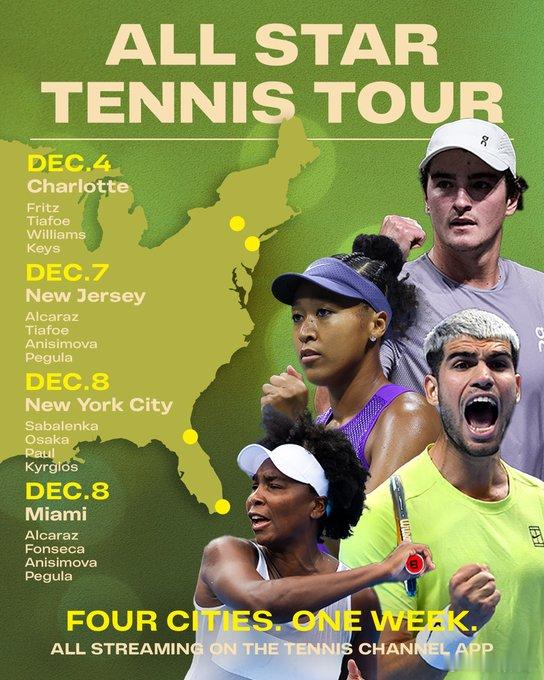 解馋12月,网球,不会停。大腕们将在夏洛特、新泽西、纽约和迈阿密的球场上亮相。时间分别是12月4日、7日、8日。阿卡,丰塞卡,大阪直美和大威。网坛风云