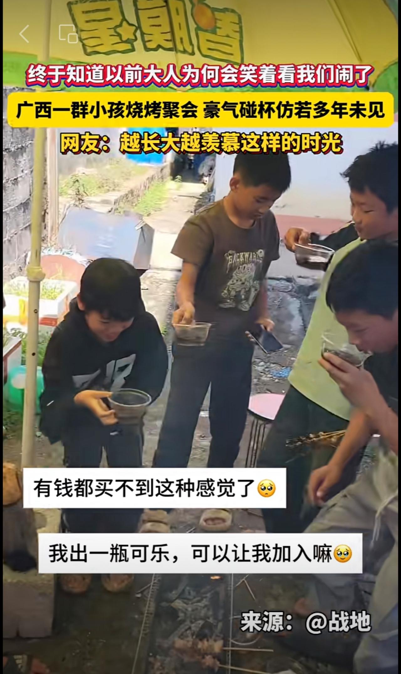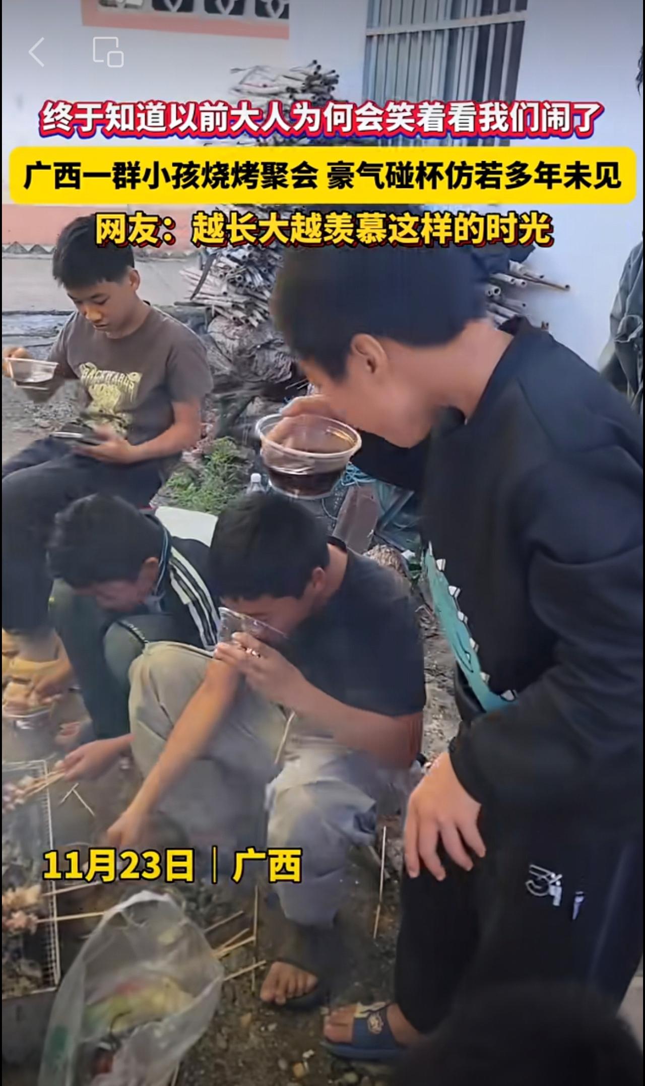 终于知道以前大人为何会笑着看我们闹了!广西一群小孩哥烧烤聚会豪气碰杯,仿若多年未见!网友:越长大越羡慕这样的时光