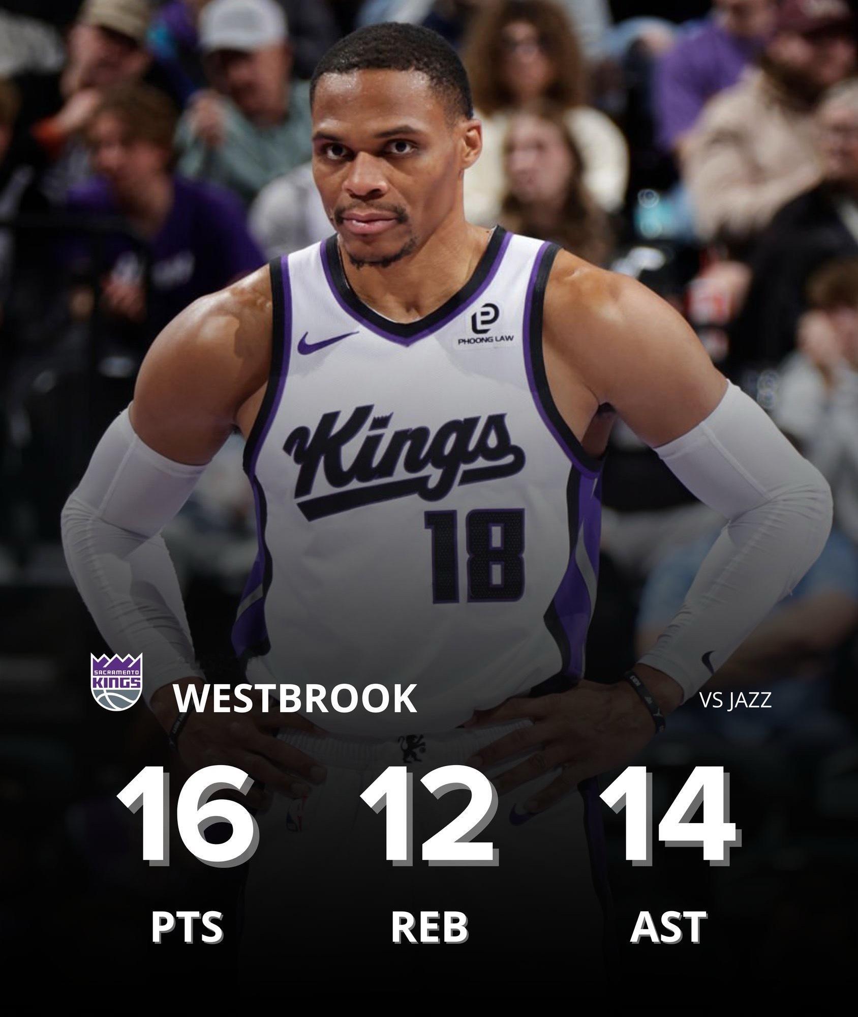 国王不敌爵士,威少拿下个人生涯第206次三双
