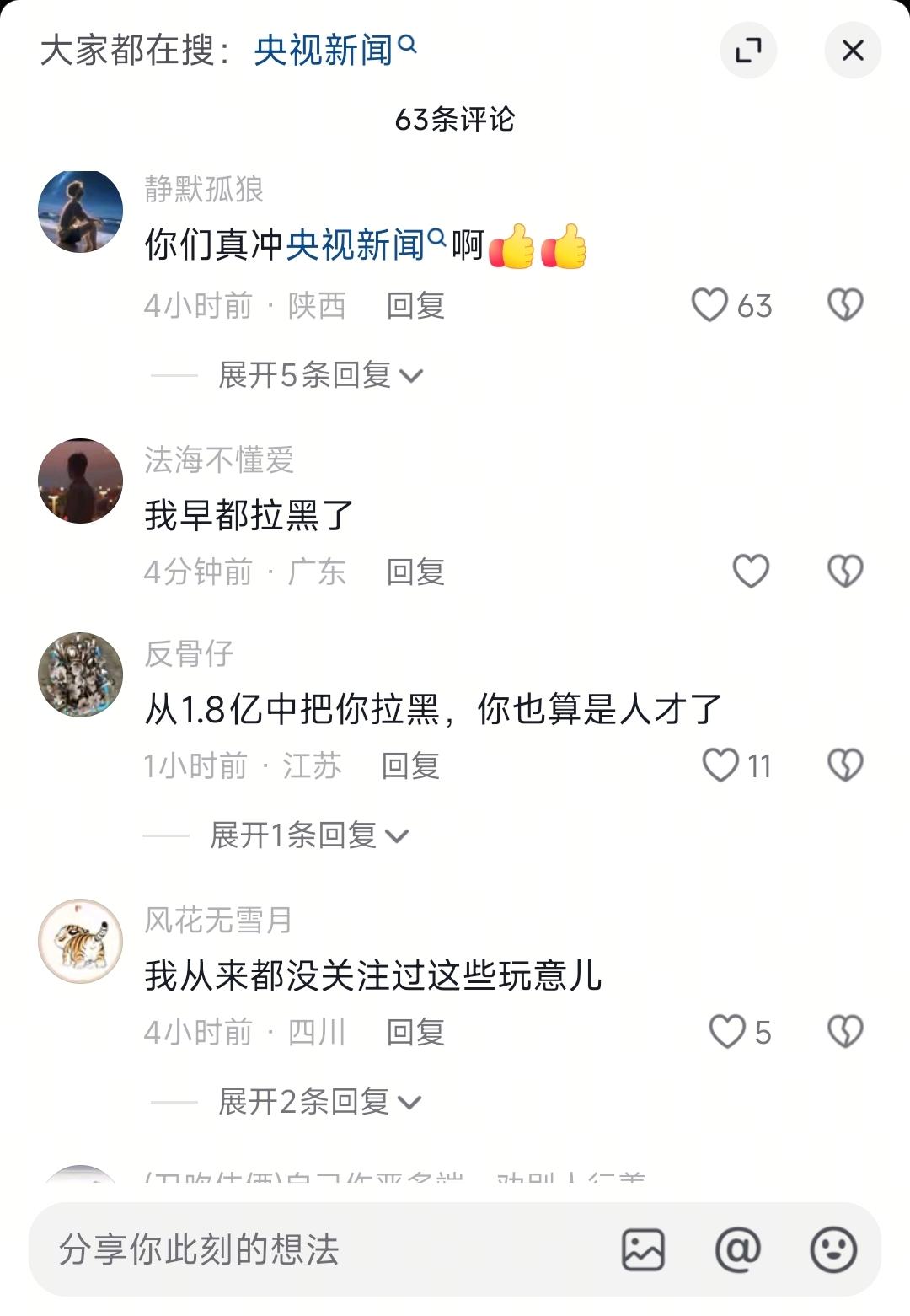 最近总是刷到这类短视频,我不相信央视官号会去拉黑一个普通人,这些明显就是领狗粮办
