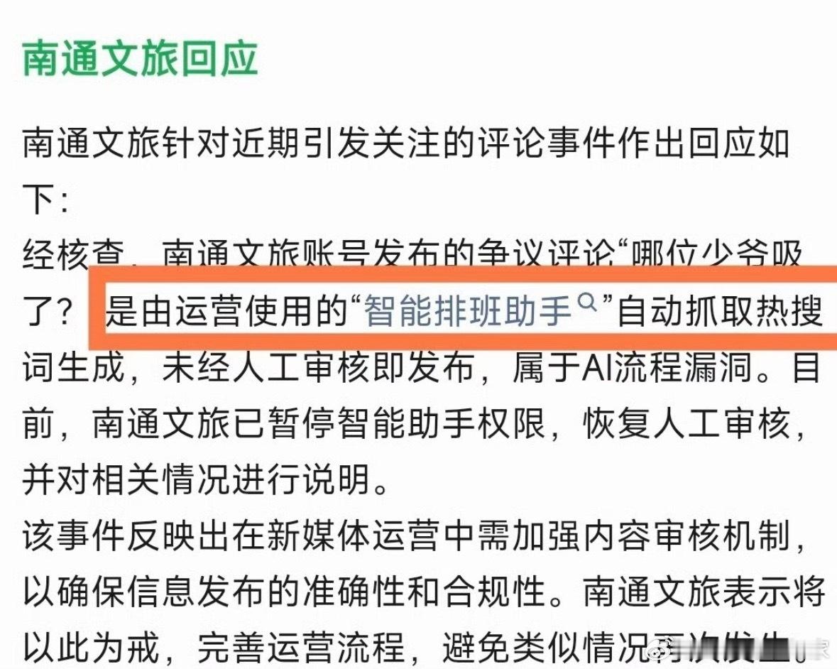 论AI的正确使用方式,哈哈哈哈,最起码不用临时工背锅了南通文旅回应