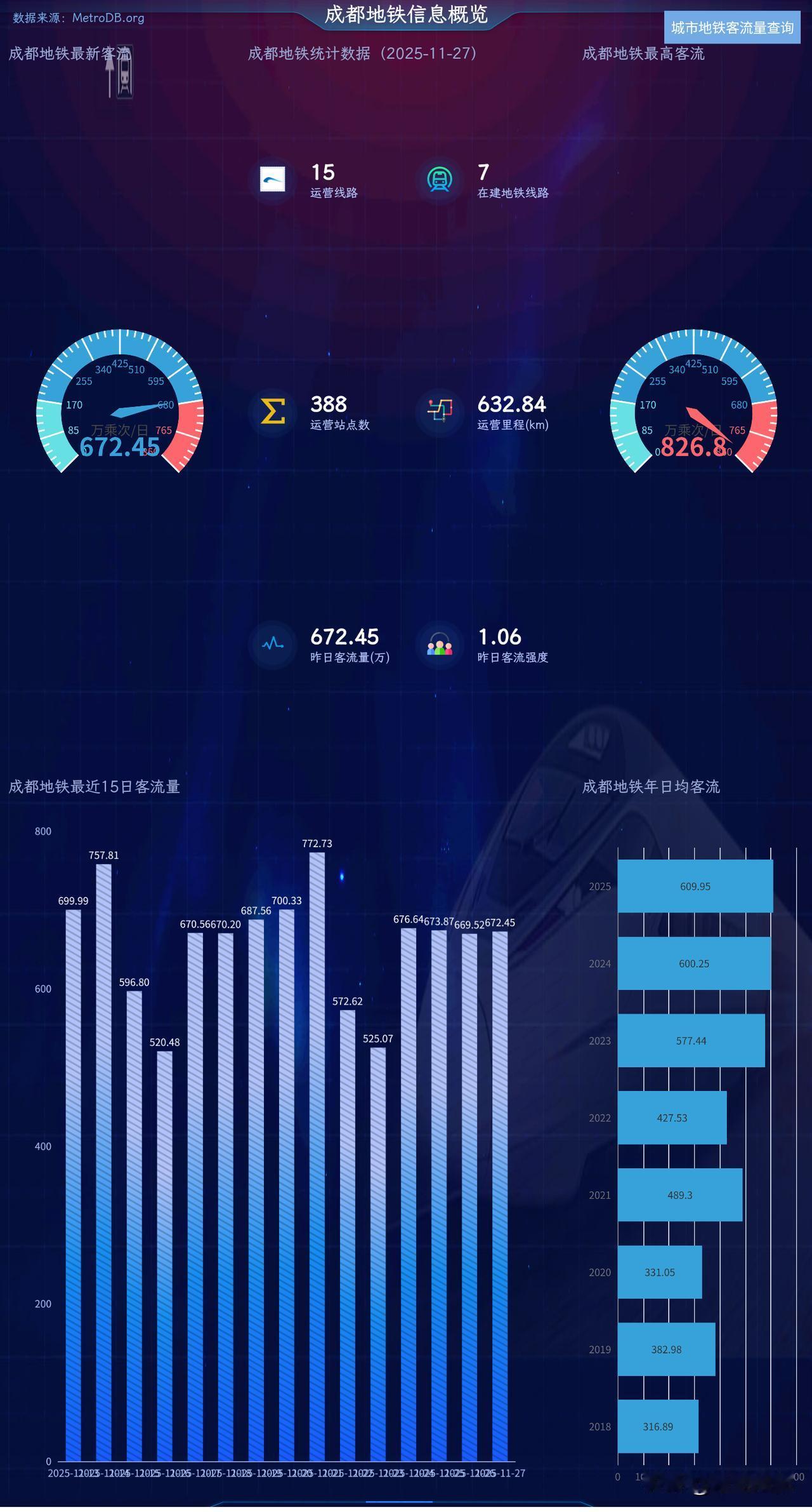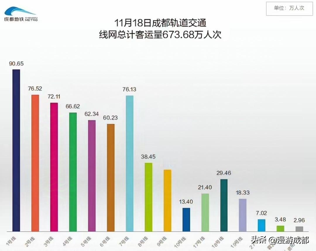 成都地铁客流量稳居中国第五城,今年日均客流量约610万人次,峰值超770万,还是很强! 成都地铁已建成运行15条,还有7条在建中,,在运行的线路中1-7号线客流量都非常大,8/9/18号线客流量还行,剩下的路线就非常一般了,可能跟路线规划有一定关系,实际需求与规划不太匹配,或者是在运行前期,客流量尚未完全发掘,大家怎么看!