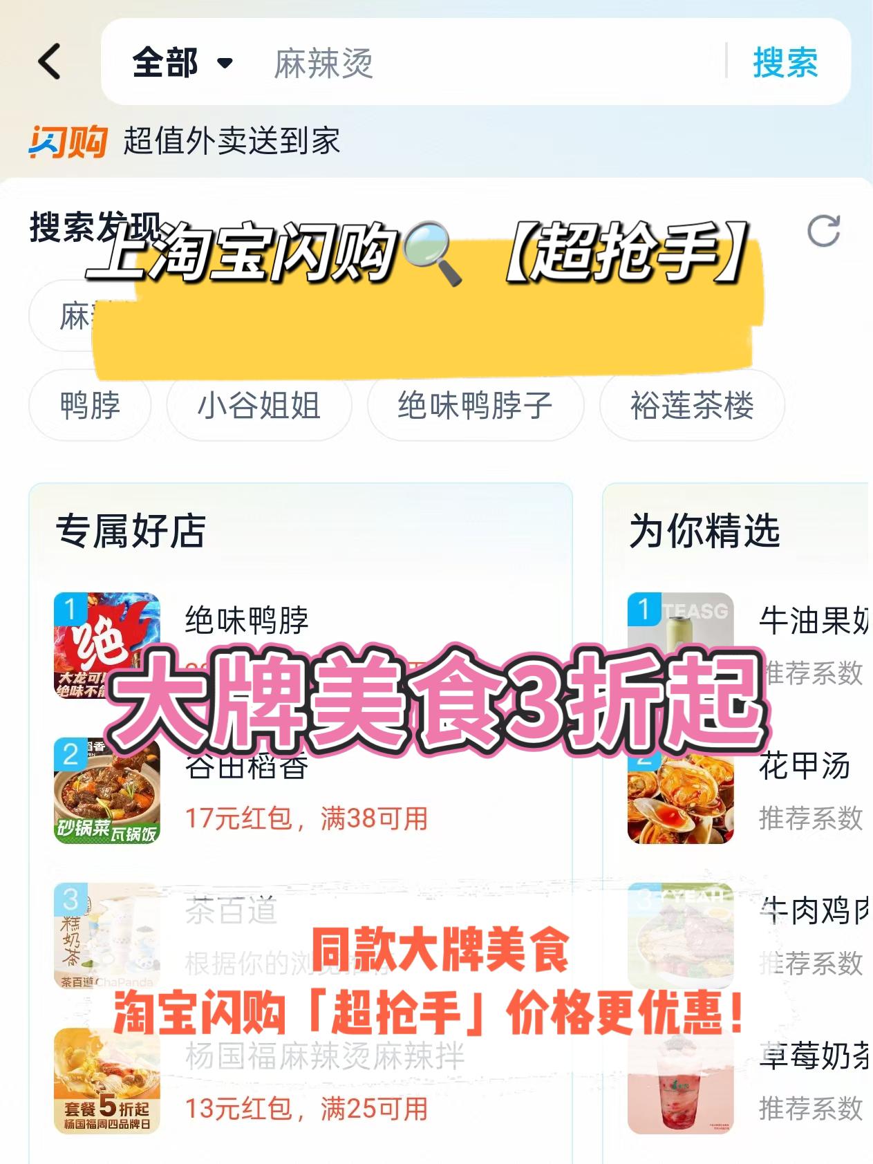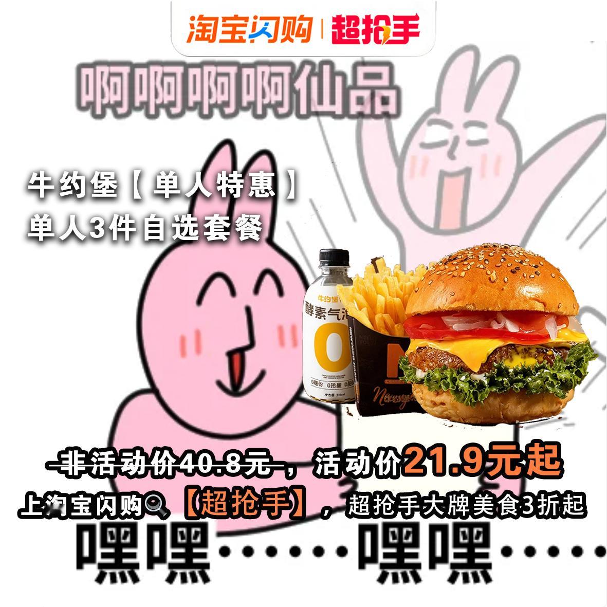 感恩节的心意,藏在和家人共享的周末下午茶里,月末的日子里,不用追求昂贵的大餐,简单的美味就足以传递温情~周末的午后,给家人准备一顿暖心下午茶,感恩他们默默的包容、日常的陪伴。牛约堡【省】汉堡主食x1+小食饮品加料x5原来89.8元,现在超抢手价23.9元起,一份套餐里汉堡、小食、饮品全配齐,轻松满足全家人的不同口味,吃得丰富又尽兴,轻松实现“一顿管饱”的小幸福。牛约堡【轻食轻卡】蛋魂厚牛双堡原来73.8元,现在超抢手23.9元起,厚实牛肉搭配滑嫩蛋魂,双堡组合吃起来更过瘾,兼顾轻卡与满足感,既照顾味蕾也不忘健康。蜜雪冰城元气满满-3杯装原来22元,现在超抢手18.8元起,三杯与家人共享,轻松点亮团聚时刻的轻松氛围。上淘宝闪购搜【超抢手】,大牌美食3折起!同款大牌美食,淘宝闪购「超抢手」价格更优惠~月末的小日子,用实惠又好吃的午餐,把感恩融进一粥一饭里,这才是最踏实的温暖。淘宝闪购超抢手超抢手给你冬日仪式感超抢手好价美食陪吴艳妮重新启杭 淘宝闪购超级周末