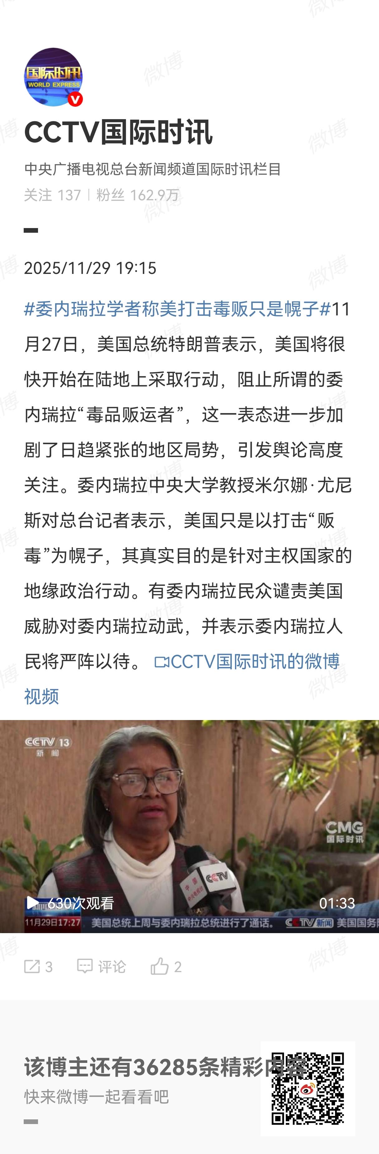 特朗普已经与马杜罗打过电话了,双方还讨论了不久将在美国会晤,美国和委内瑞拉爆发战争的可能性几乎为零了,今年的和平奖得主交给特朗普的投名状也白交了—她没有机会问鼎委内瑞拉总统宝座,但至少她今年收获了一座奖杯,算有收获的。至于画风为什么转变的这么快,据说和一封生日祝福函有关。如果把世界看着一盘棋局,高手怎么下,棋子是看不懂的,只有自己位置挪动了,才知道自己被挪动了。隔壁邻居交投名状的,结局应该会更惨一点。