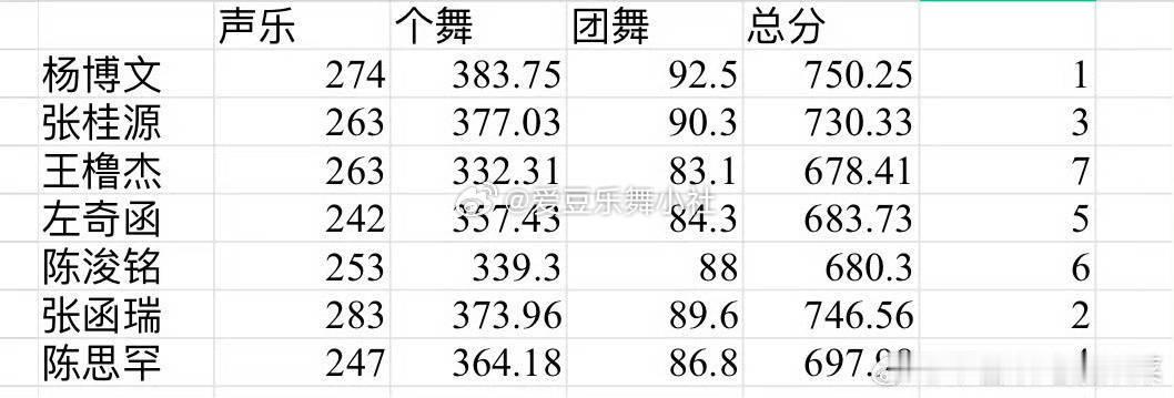 【TF四代】TF四代11月考核 🎀TF家族四代11月考核总分:杨博文 > 张函瑞 > 张桂源 > 陈思罕 > 左奇函 > 陈浚铭 > 王橹杰