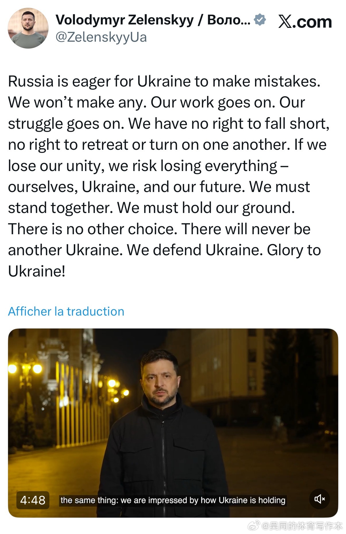 【黄金时代】泽连斯基向全国发表讲话:贪腐不重要,不是错,团结最重要,不团结才是错。不团结怎么对抗俄罗斯呢?俄罗斯渴望乌克兰犯错。我们绝不会犯错。我们的工作仍在继续。我们的斗争仍在继续。我们没有权利退缩,没有权利退缩,也没有权利内讧。如果我们失去团结,我们将失去一切——我们自己、乌克兰和我们的未来。我们必须团结一致。我们必须坚守阵地。别无选择。乌克兰将永远存在。我们捍卫乌克兰。乌克兰万岁!美国和欧洲当代史川普主义研究热点现场海外新鲜事