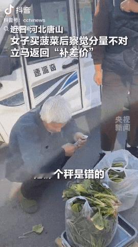 近日,河北唐山,一女子在一老爷爷的摊位上买了一斤菠菜,当老爷爷称完菜之后,发觉重