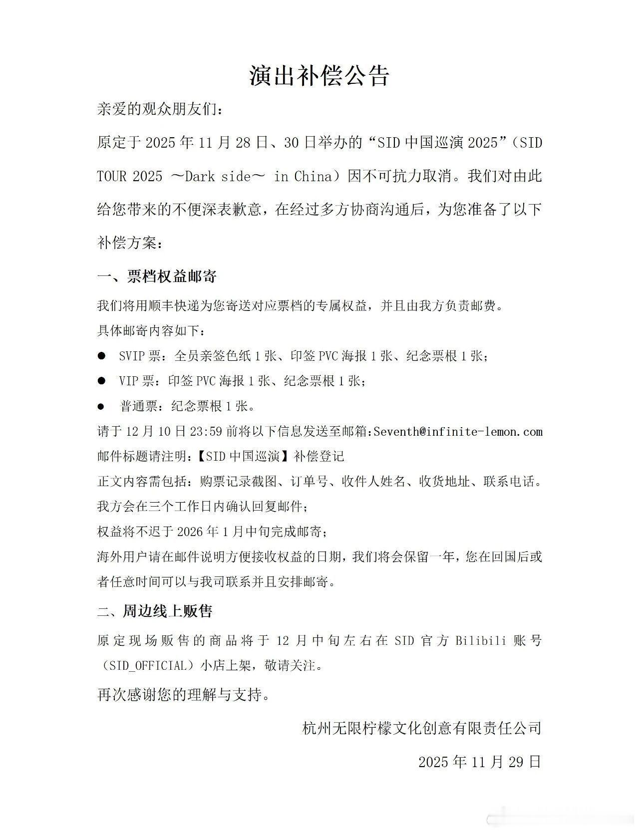 看到这条国内主办方赔偿的公告,因为不可抗力取消日本歌手的演出,不仅一分钱没赚到,还要额外给退票的乐迷补偿。然后像这种当天取消的演出,大量外地乐迷的机票与酒店基本也都白白损失掉,最后付出真金白银损失的都是国内的相关方。
