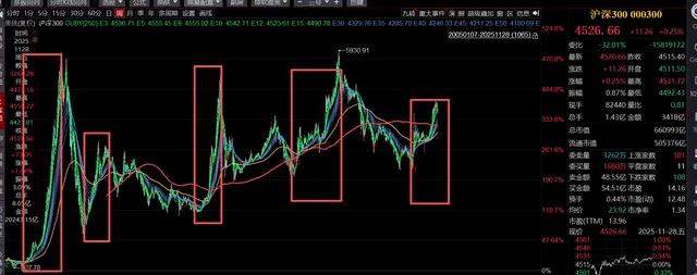 牛市往往是踩着周线图的长期均线组震荡上行的(中期视角先)。见下图。