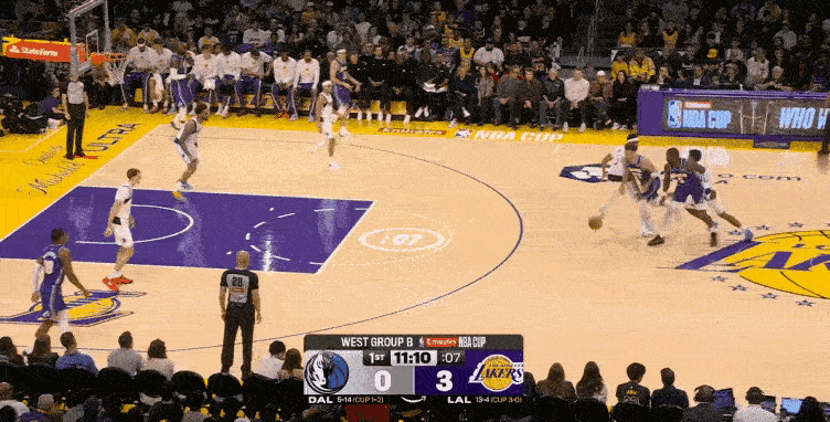 [6]东契奇缓慢切入内线,一个小抛球,助攻詹姆斯完成空接背扣。 他倆这个组合应该